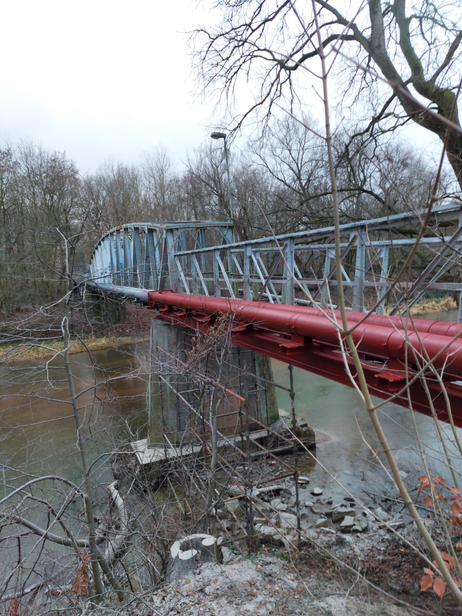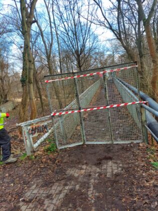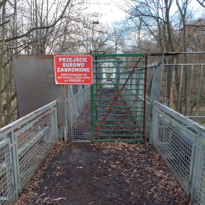 W przyszłym tygodniu rozpoczną się prace rozbiórkowe i kładka zostanie zdemontowana. Prosimy o zachowanie szczególnej ostrożności i przestrzeganie zakazu przechodzenia przez kładkę.