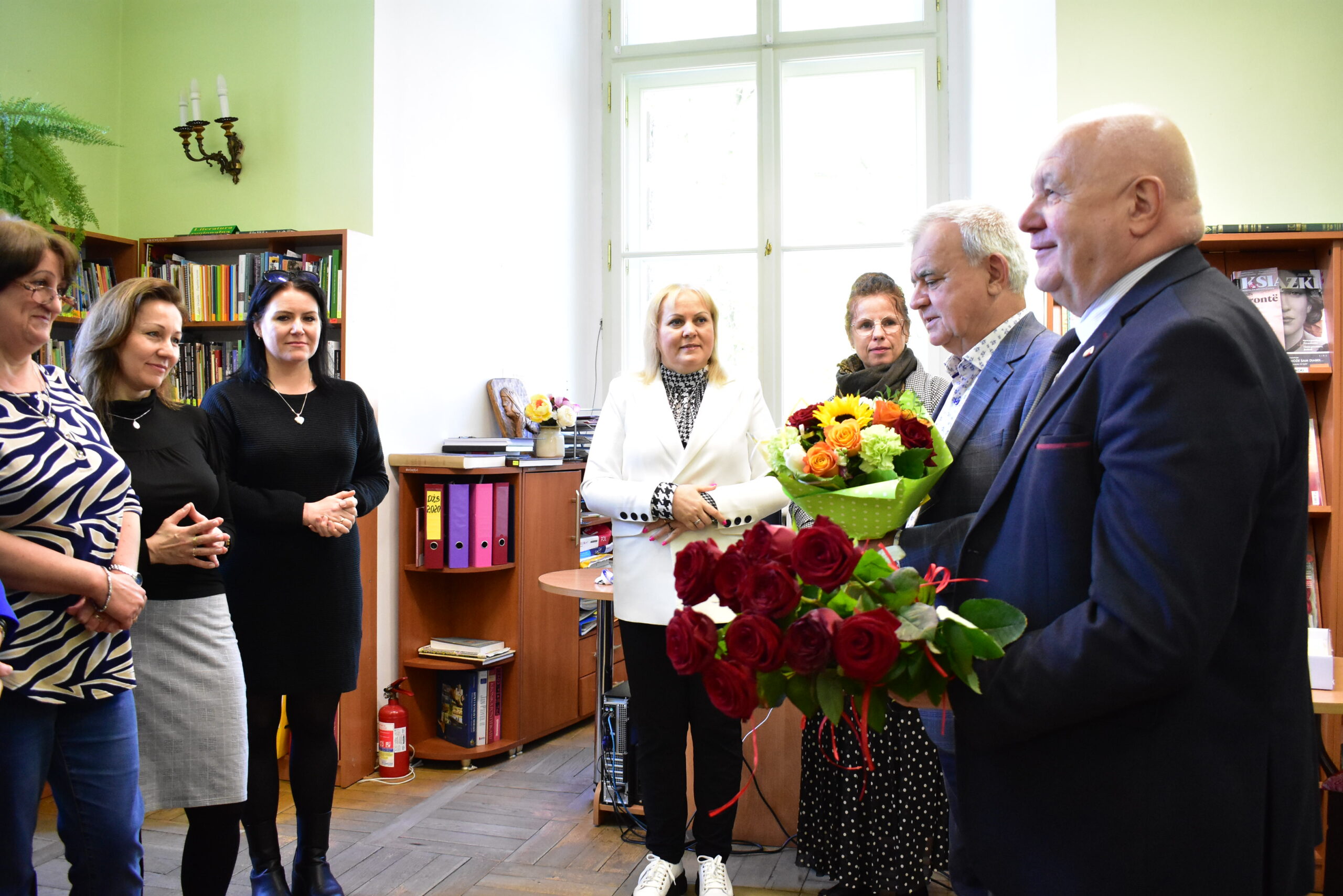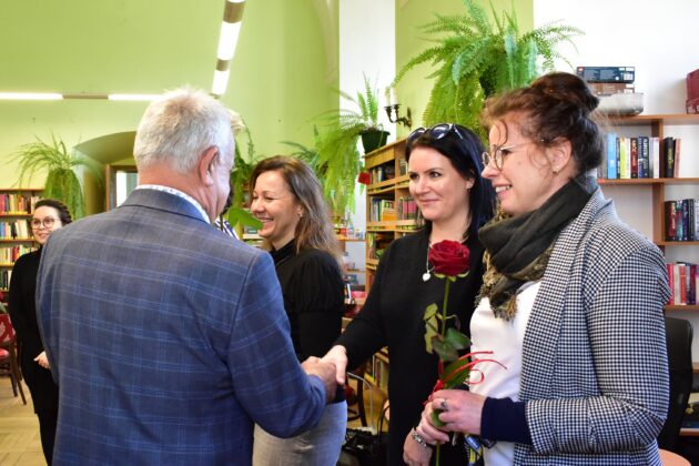 Burmistrz Andrzej Katarzyniec wspólnie z przewodniczącym rady Adamem Matwijowem wręczyli dziś kwiaty żagańskim bibliotekarkom. Upominki i życzenia z okazji ich Święta, stały się również okazją do wspólnej rozmowy przy kawie. Gospodarz miasta podziękował Paniom za ciężką pracę, która jak okazało się w trakcie rozmowy, bywa dosłownie “ciężka”, szczególnie w okresie inwentaryzacji. Panie poinformowały również, że coraz więcej osób korzysta z książnicy. Staje się ona źródłem wiedzy dla kolejnych pokoleń mieszkańców, jak i miejscem odpoczynku dla zabieganych. Wiele osób sięga po prasę, korzysta z komputerów, odwiedza czytelnię.