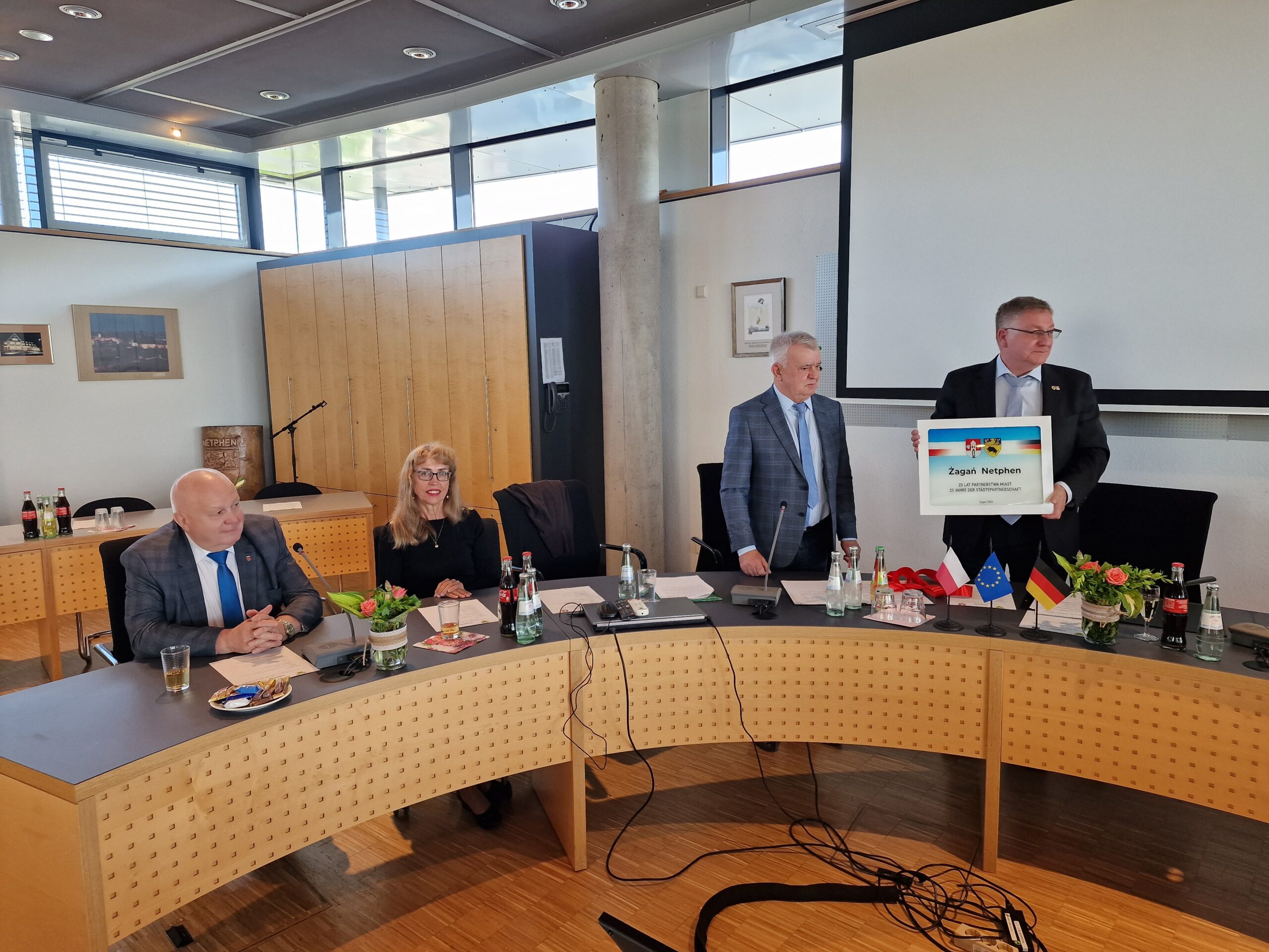 Delegacja Żagania z burmistrzem Andrzejem Katarzyńcem i przewodniczącym rady Adamem Matwijowem, skarbnik Teresą Łapczyńską,radnymi, przedstawicielami miejskich spółek, szkół i stowarzyszeń oraz młodzież z sekcji lekkoatletycznej WKS Sobieski Sport Zone Żagań udała się w miniony weekend do miasta partnerskiego Nethpen na uroczystości 25-lecia współpracy. Żagańska delegacja wzięła udział w posiedzeniu rady miasta Nethpen, dziękując za wieloletnią współpracę i wspólnie zrealizowane projekty. Młodzież uczestniczyła w zawodach sportowych, które z tej okazji przygotowali gospodarze spotkania. Kolejny wyjazd stał się okazją do rozmowy o wspólnych przyszłych projektach. Burmistrz Netphen Paul Wegener zadeklarował udziału niemieckiej młodzieży w wiosennych biegach przełajowych w Żaganiu.