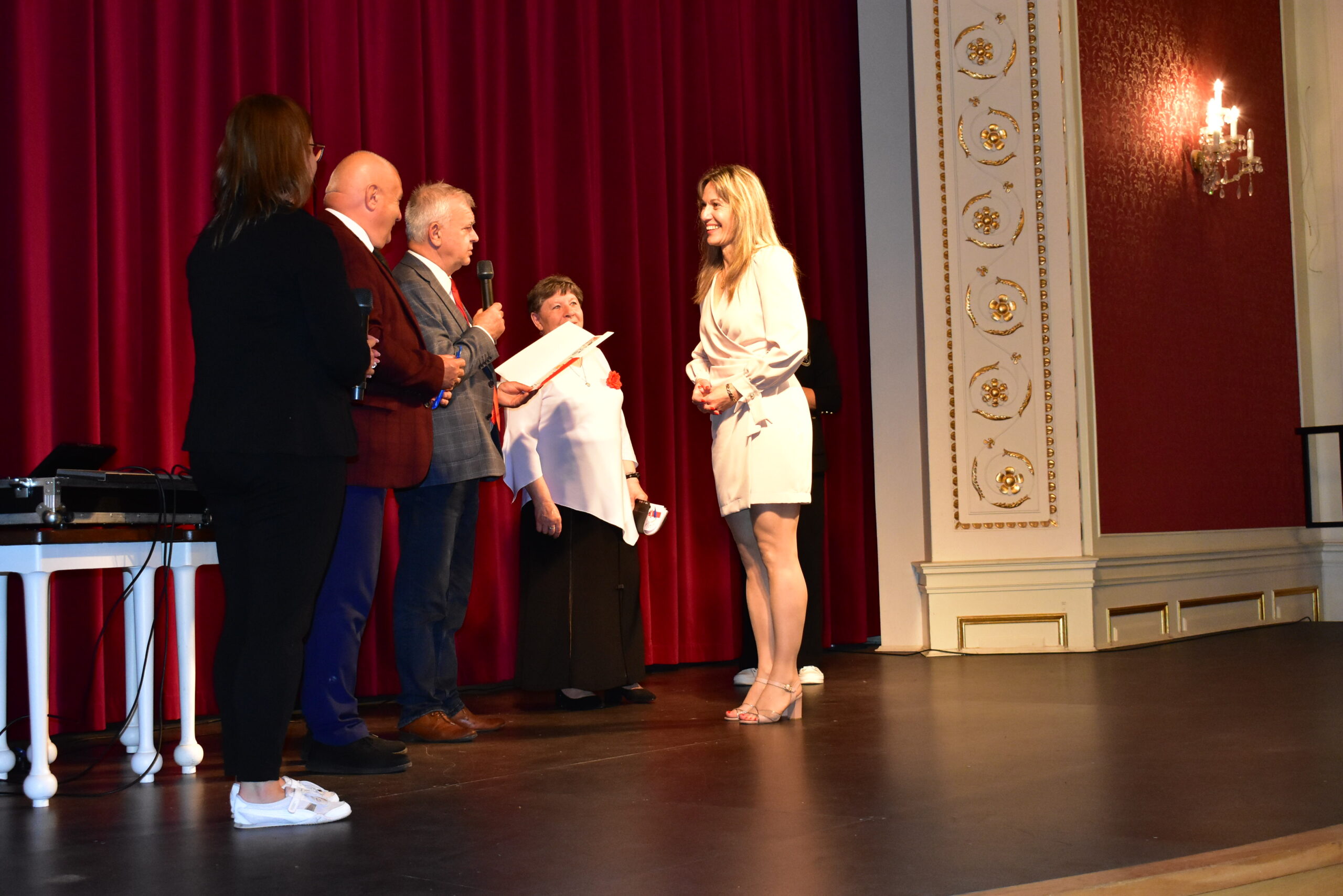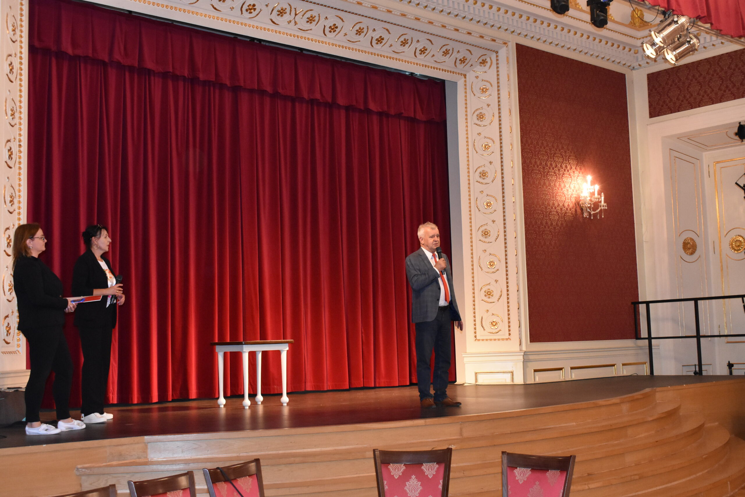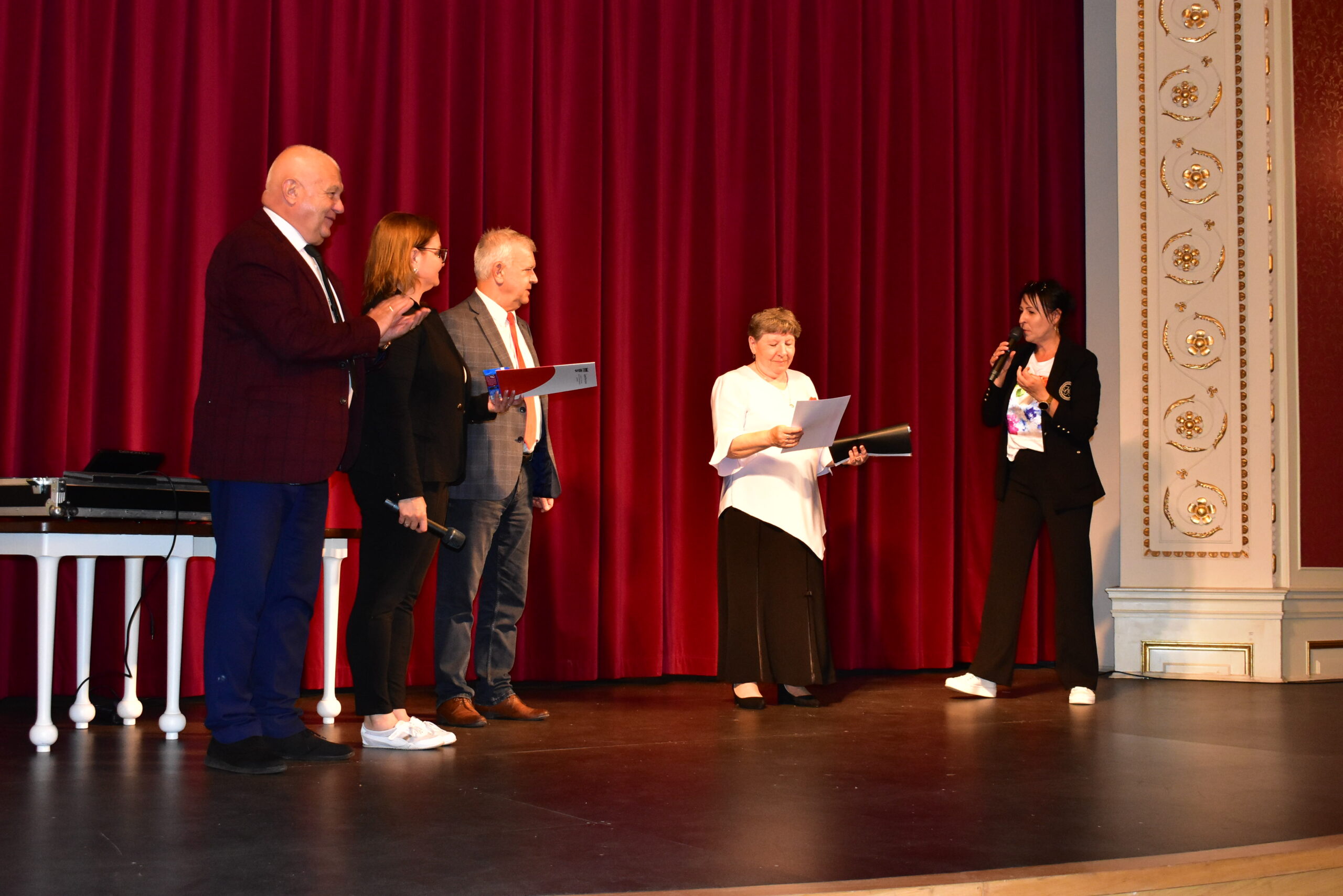 Pomimo niesprzyjającej pogody, bo szybkiej przeprowadzce z pałacowego dziedzińca do sali Kryształowej, uczniowie żagańskiego Uniwersytetu Trzeciego Wieku zaprezentowali zdobyte w ciągu roku umiejętności, podsumowując w ten sposób rok akademicki 2022/2023. Burmistrz Andrzej Katarzyniec pogratulował studentom osiągniętych wyników, wręczając na ręce Stanisławy Szczepanik, przewodniczącej UTW,  świadectwo z czerwonym paskiem dla wszystkich abiturientów. Gospodarz miasta wspólnie z przewodniczącym rady miasta Adamem Matwijowem podziękował wykładowcom za rok intensywnej i bardzo owocnej pracy, za radość, jaką niosą żagańskim seniorom zajęcia i zdobywane umiejętności.