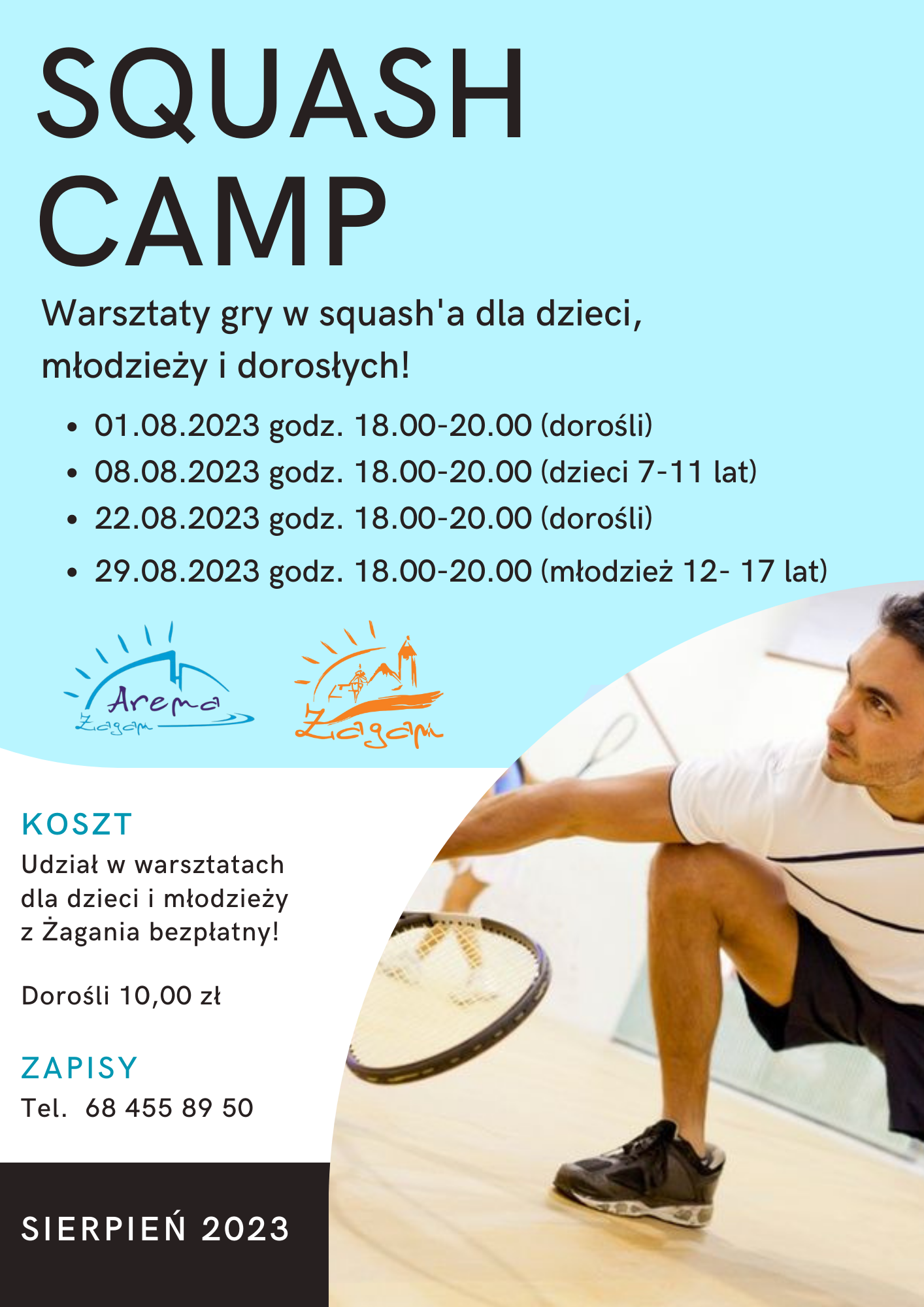 Zapraszamy dzieci i młodzież uczącą się w szkołach podstawowych i średnich na bezpłatne warsztaty squash’a. Osoby dorosłe obowiązuje wejściówka w kwocie 10 zł.