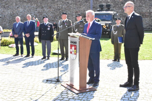 Spotkaliśmy się dziś aby upamiętnić 84 rocznicę wybuchu II wojny światowej – najtragiczniejszego konfliktu zbrojnego w historii świata, który rozpoczęła napaść Niemiec hitlerowskich na Polskę 1 września 1939 roku – powiedział w trakcie uroczystości Andrzej Katarzyniec -Burmistrz Miasta Żagań. – Pochylmy dziś głowy i oddajmy hołd tym, którzy polegli na ziemi, na morzu i w powietrzu. Tym, których zabito w komorach gazowych obozów zagłady, tym, którzy zginęli pod gruzami bombardowanych miast. To dzięki nim mamy wolność, którą dziś możemy się cieszyć. Pamiętajmy jednocześnie, jak łatwo tę wolność stracić.