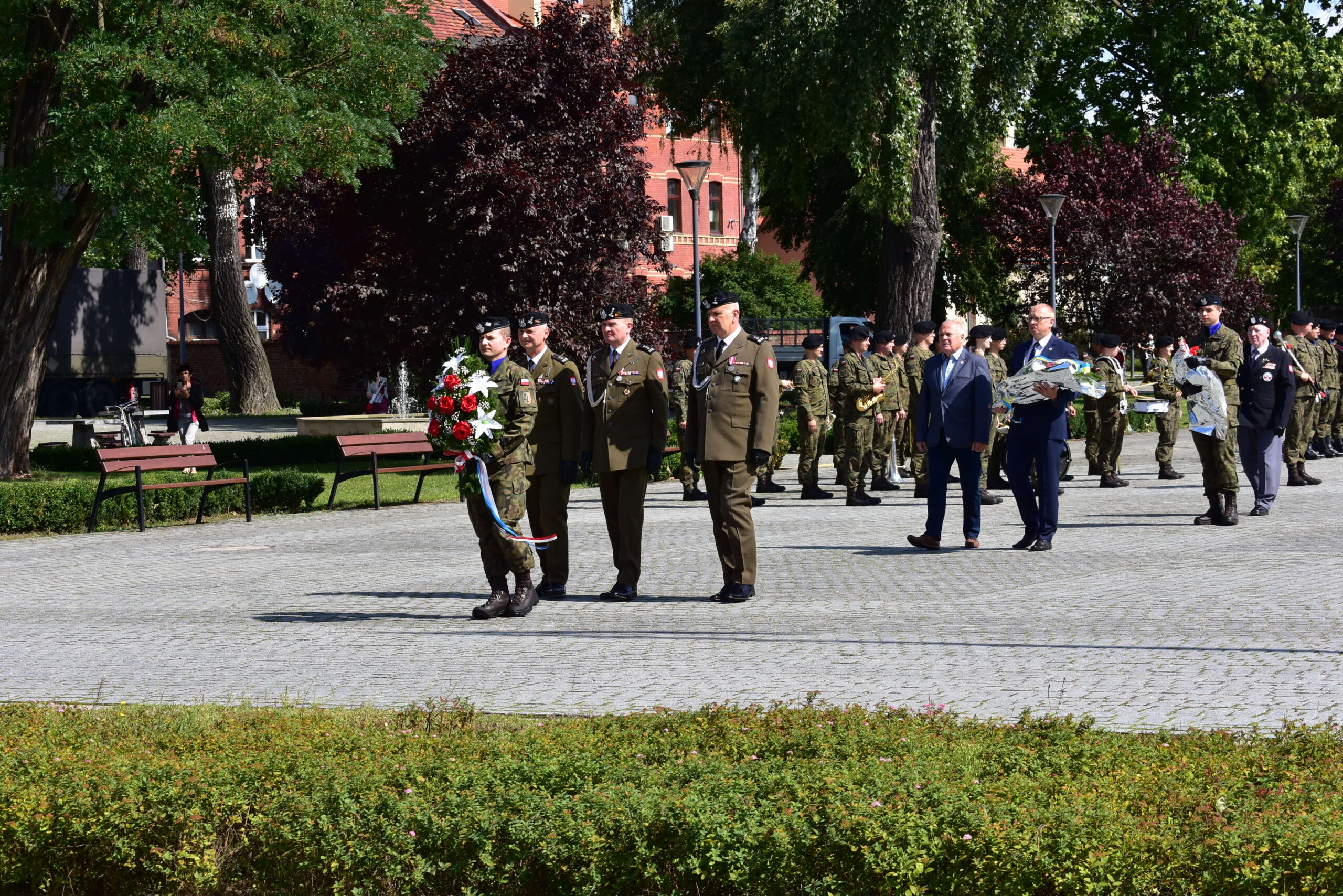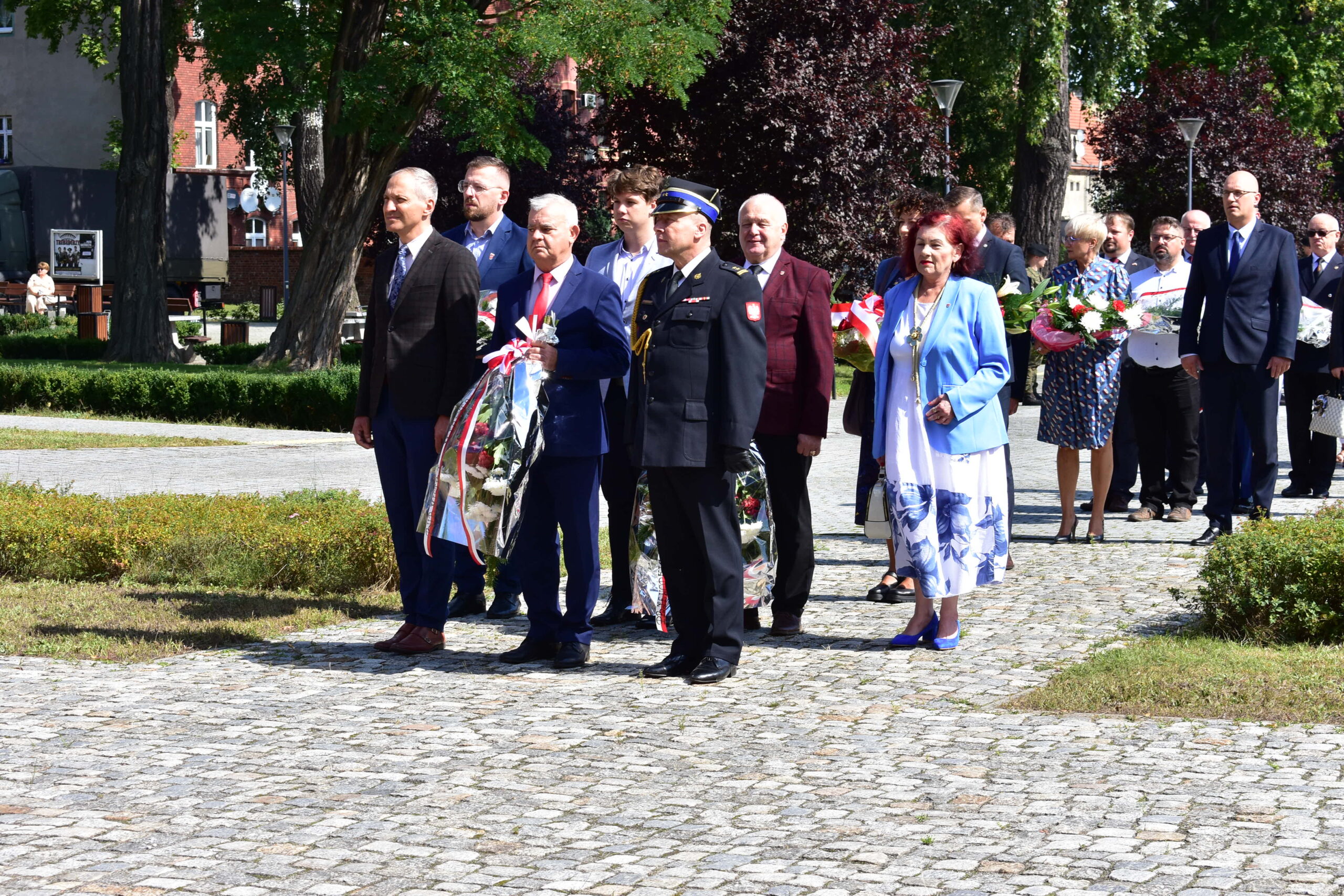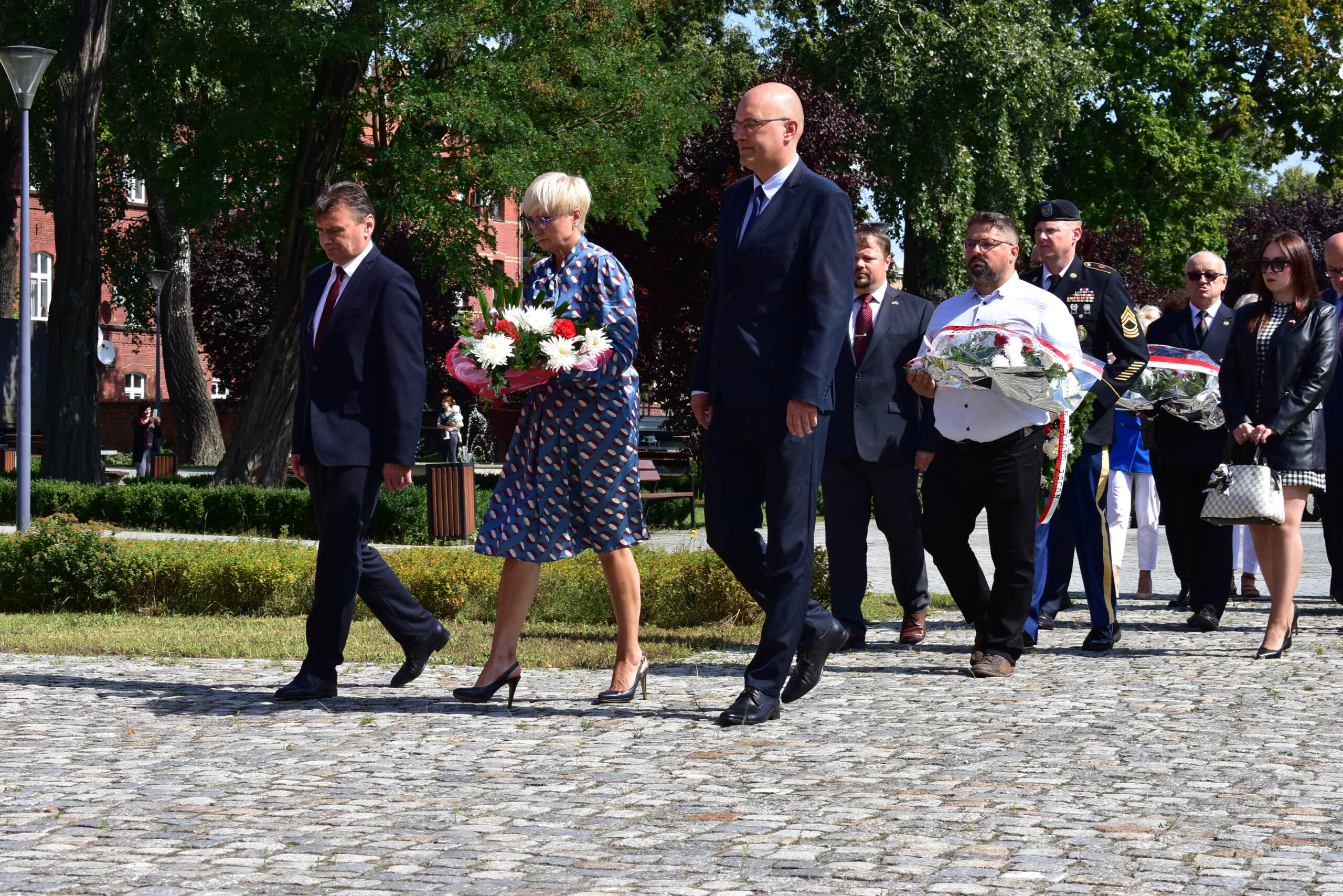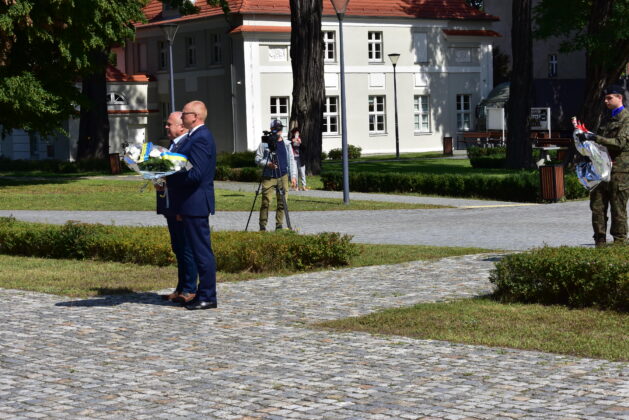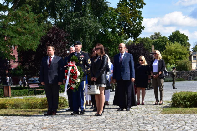 Przedstawiciele samorządu, żołnierze Czarnej Dywizji, mieszkańcy oraz członkowie stowarzyszeń kombatanckich złożyli kwiaty pod pomnikiem 1 Dywizji Pancernej i 1 Korpusu Pancernego, oddając hołd ofiarom II wojny światowej.