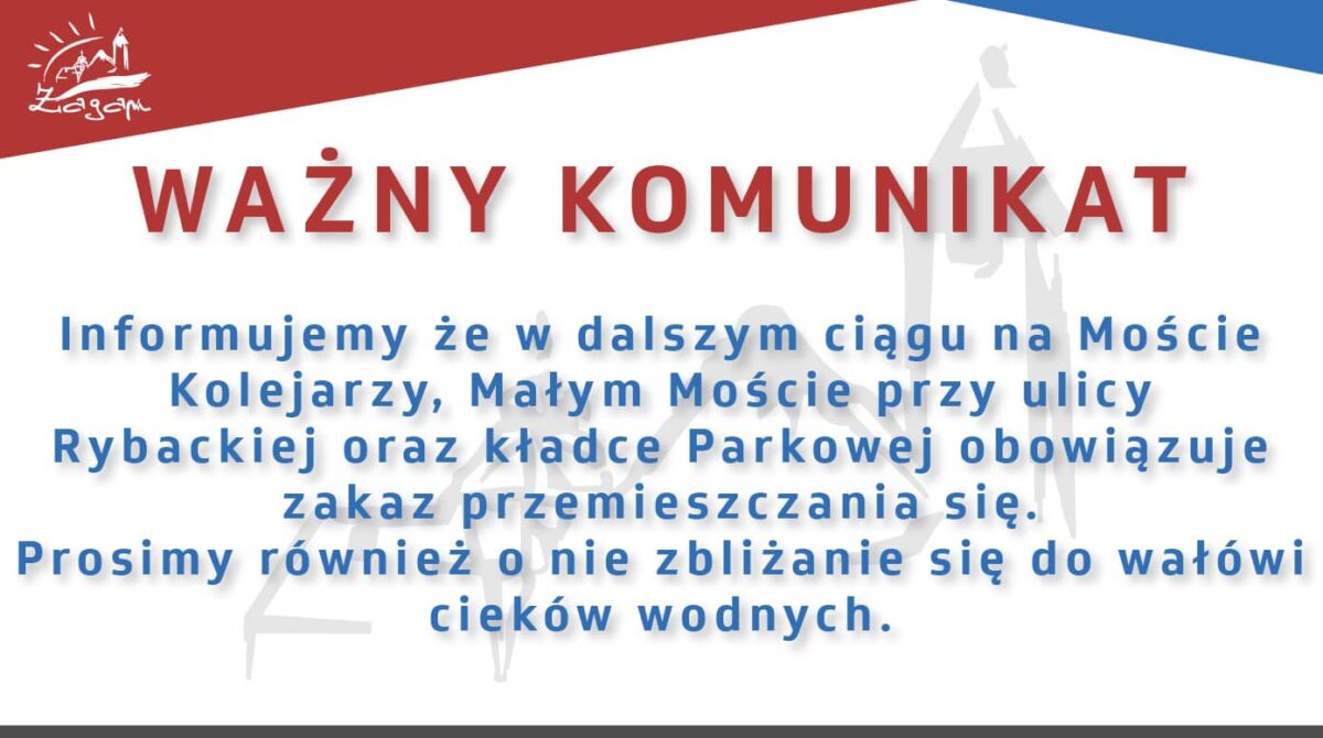 Informujemy, że most Żaganny (główny most) jest już przejezdny. Natomiast kładka Parkowa prowadząca na wyspę w parku, most Kolejarzy za starostwem powiatowym oraz Mały Most przy ul. Rybackiej aktualnie pozostają zamknięte.