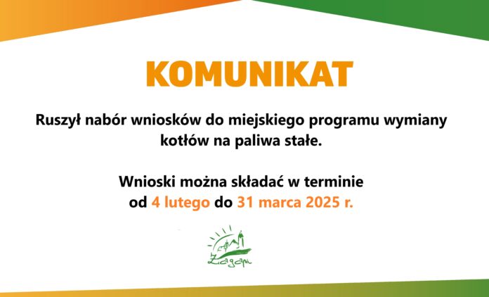Burmistrz Miasta Żagań informuje, że od 4 lutego do 31 marca 2025 r. przyjmowane są wnioski o udzielenie dotacji celowej na wymianę urządzenia grzewczego opalanego paliwem stałym, o sprawności cieplnej poniżej 80% lub użytkowanego dłużej niż 10 lat, na urządzenie grzewcze zasilane gazem, energią elektryczną lub pompą ciepła.