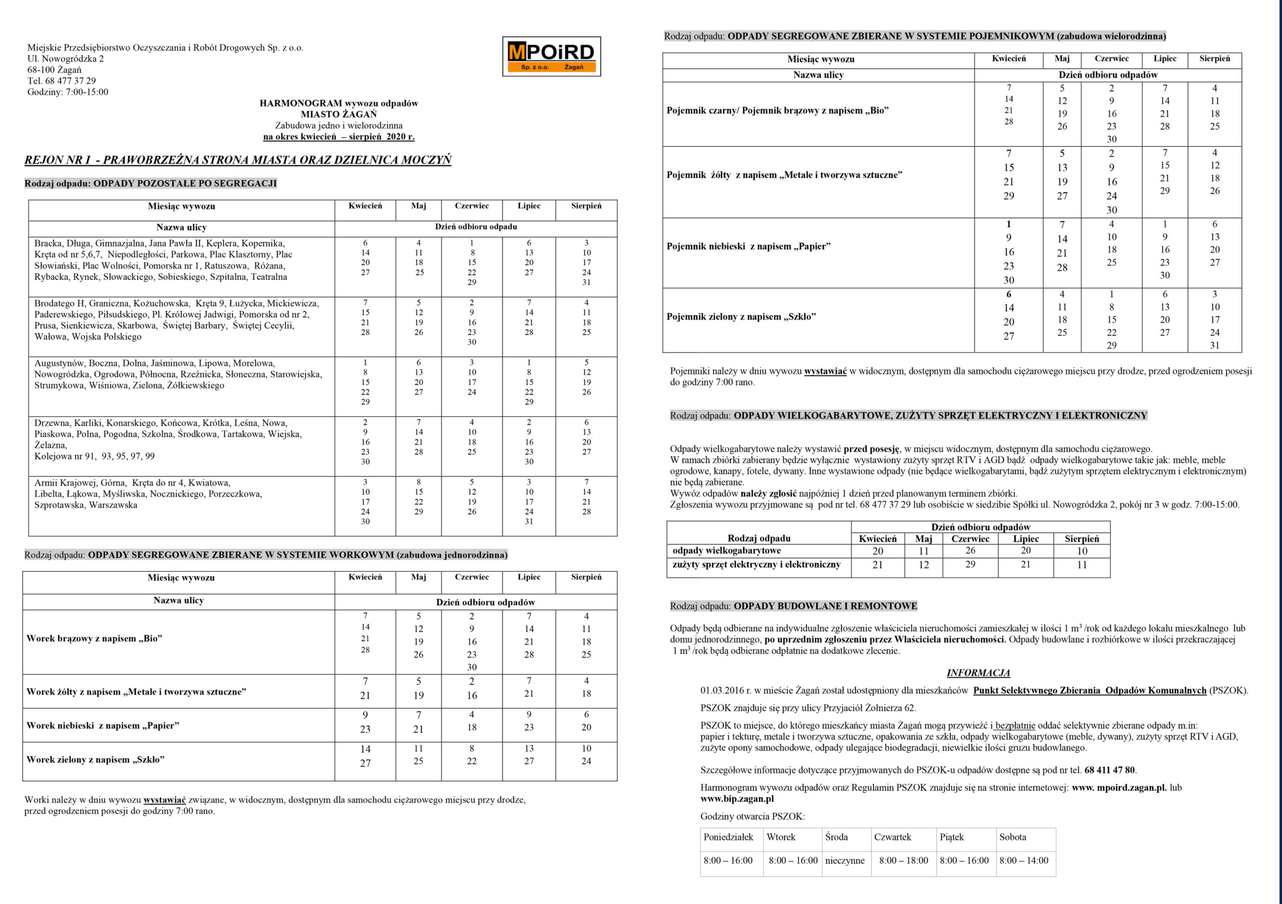 HARMONOGRAM ODBIORU ODPADÓW