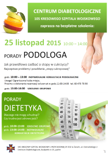 Centrum Diabetologiczne 105. Kresowego Szpitala Wojskowego w Żarach zaprasza na bezpłatne szkolenia:25 listopada 2015 roku w godzinach od 10:00 do 14:00 można skorzystać z porad podologa, który podpowie, jak prawidłowo zadbać o stopy cukrzycowe.Z uwagi na ograniczoną liczbę miejsc na konsultacje indywidualne prosimy o dokonywanie rezerwacji pod numerem telefonu 68 470 78 90. Również 25 listopada […]