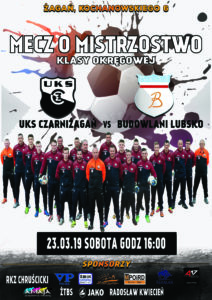 W sobotę 23 marca 2019 o godzinie 16.00 rozpocznie się mecz o mistrzostwo klasy okręgowej pomiędzy UKS Czarni Żagań vs Budowlani Lubsko. Zachęcamy do kibicowania naszym zawodnikom. Spotykamy się na boisku kompleksu Arena przy ul. Kochanowskiego 6.