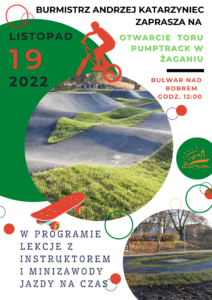 Zapraszamy wszystkie dzieci i młodzież do udziału w symbolicznym otwarciu wyczekiwanego toru pumptrack w Żaganiu! Spotkajmy się w sobotę 19 listopada o godzinie 12.00 na bulwarze nad Bobrem od ulicy Skarbowej. Na miejscu profesjonalni instruktorzy zapoznają Was z zasadami bezpiecznego poruszania się po torze oraz przeprowadzą lekcje pokazowe. Dodatkowo zapraszamy Was do udziału w minizawodach […]