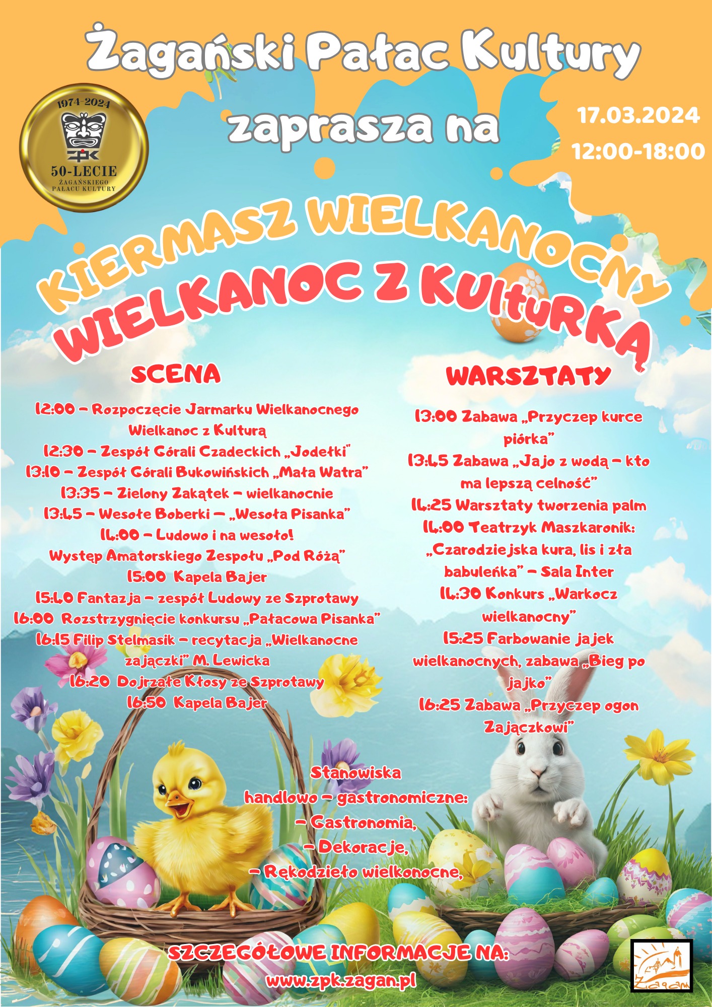 Pomaleńku, powolutku rozpoczynamy przygotowania do Wielkanocy. Przed świętami warto zaplanować zakupy ozdób i prezentów lub wykonać samodzielnie pisanki. Aby ułatwić Wam zakup oryginalnych ozdób, wprowadzić w klimat nadchodzących świąt, dać możliwość ciekawego spędzenia czasu z rodziną, przygotowaliśmy wspólnie z Żagański Pałac Kultury Kiermasz Wielkanocny.