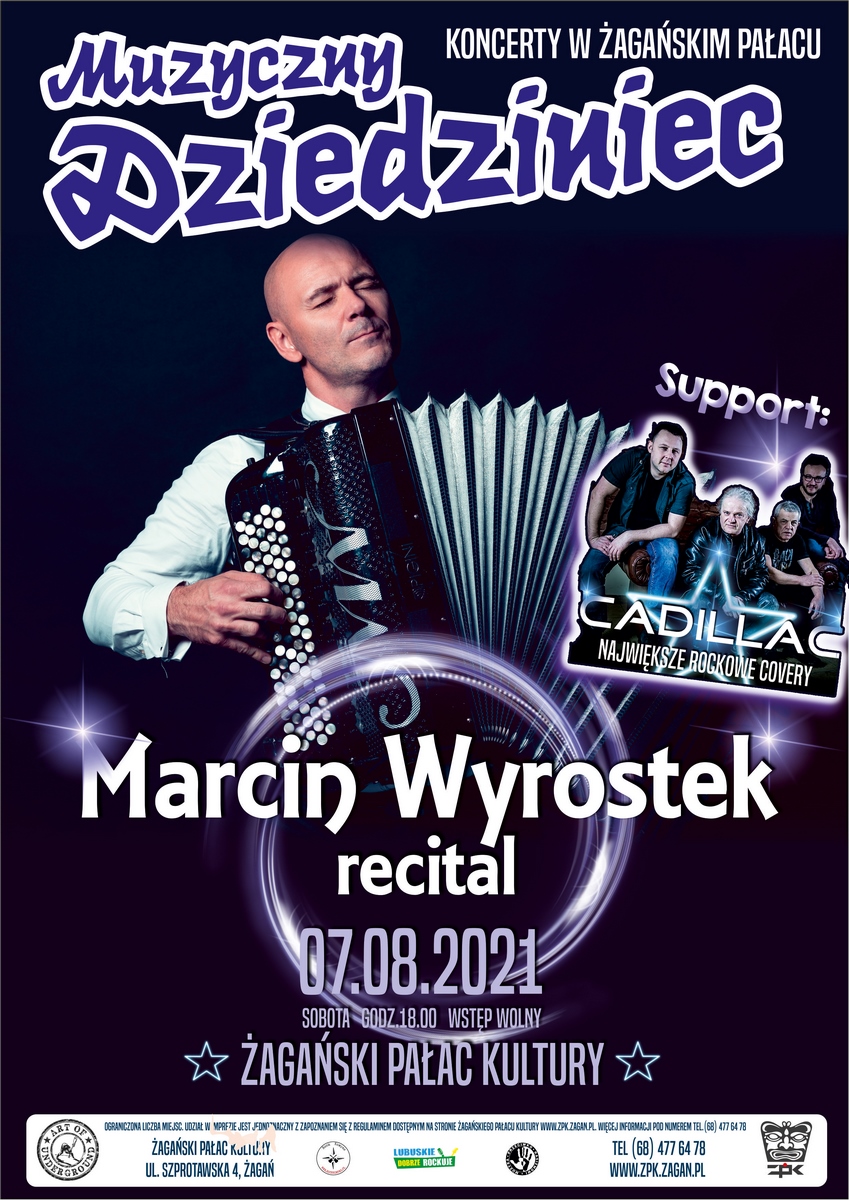 Już 7 sierpnia w ramach wakacyjnych koncertów cyklu ,,Muzyczny Dziedziniec” wystąpi zwycięzca drugiej edycji programu „Mam talent” – Marcin Wyrostek. Przed nim scenę i żagańską publiczność rozgrzeje zespół Cadillac grając największe rockowe przeboje! Start koncertów o godz.18.00, wstęp na koncerty jest bezpłatny!