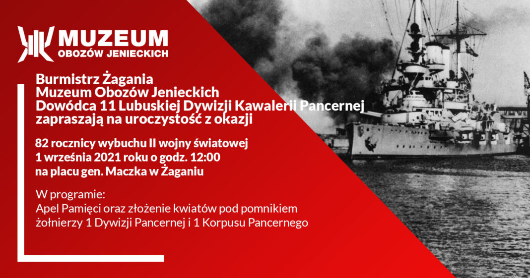 Burmistrz Miasta Żagań, Dowódca 11 Lubuskiej Dywizji Kawalerii Pancernej oraz Muzeum Obozów Jenieckich zapraszają 1 września na uroczystość z okazji 82. rocznicy wybuchu II wojny światowej. O godz. 12.00 na pl. Gen. Stanisława Maczka zostanie odczytany Apel Pamięci, następnie uczestnicy uroczystości złożą kwiaty pod pomnikiem żołnierzy 1 Dywizji Pancernej i 1 Korpusu Pancernego.