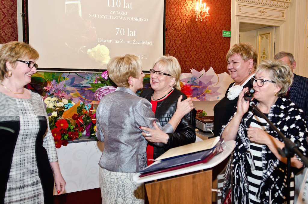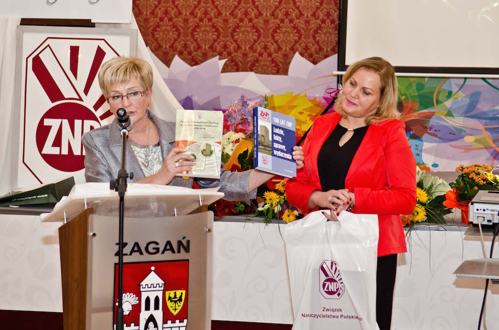 21 października w Sali Kryształowej Pałacu Książęcego odbyła się uroczystość obchodów 110. rocznicy powstania Związku Nauczycielstwa Polskiego i 70. rocznicy szkolnictwa na Ziemi Żagańskiej. ZNP w Żaganiu powstał w 1945 roku w Szkole Powszechnej nr 1. Założycielami byli: Roman Zawistowski i Ludwik Kimber. Gościem uroczystości był Pan Feliks Tęcza (jedyny żyjący prezes ZNP), którego działania doprowadziły do reaktywacji Związku w 1983 roku po zawieszeniu stanu wojennego. Uhonorowano najstarszą członkinię ZNP Panią Lidię Cydzik, która legitymuje się 70-letnim stażem związkowym. Obecnie oddział ZNP w Żaganiu liczy 326 członków.