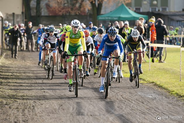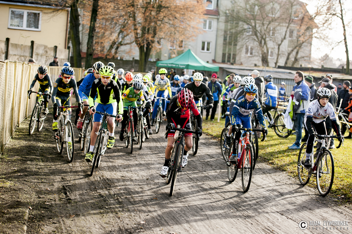 Za nami przełajowy Puchar Polski wyścig o Puchar Burmistrza Miasta Żagań. Dopisała pogoda oraz frekwencja. Do miasta przyjechali najlepsi zawodnicy z czołowych klubów w Polsce. Wystartowało 200 zawodników we wszystkich kategoriach wiekowych. Dzieci z rocznika 2007/2008/2009 rywalizowały na bieżni stadionu na dystansie ok. 400 metrów. Nie zabrakło też najmłodszych żaczków. Młodzicy z trzema naszymi zawodnikami wystartowali na pełnej rundzie która miała 2.500 metrów. Młodzicy mieli do przejechania 10.8 km w bardzo wymagającej rundzie. Najlepiej z naszych zawodników spisał się Tomasz Kasprzyk, który po upadku ukończył wyścig na szóstej pozycji. Dwie pozycje dalej, czyli na ósmym miejscu, był Marcin Kamiński. A na 24 linię mety przekroczył Oliwier Lewoniecki. W kategorii junior młodszy sporo emocji ufundował nam Kacper Siński. Juniorzy młodsi mieli do pokonania13,5 km. Kacper od startu jechał na trzeciej pozycji, lecz po drugim okrążeniu spadł na czwarte miejsce . Siński niesiony dopingiem kibiców robił wszystko w walce o podium i udało się po bardzo ciężkiej walce. Na ostatnim okrążeniu wyprzedził swego rywala i dowiózł trzecią pozycję do mety. Szykujemy się do Mistrzostw Polski, które odbędą się w styczniu. Ten wyścig pokazał, że Kacper potrafi się mobilizować i dać z siebie 110 procent. Drugim juniorem młodszym był Jacek Dudar, który po dobrej, równej jeździe ukończył wyścig na szóstej pozycji.