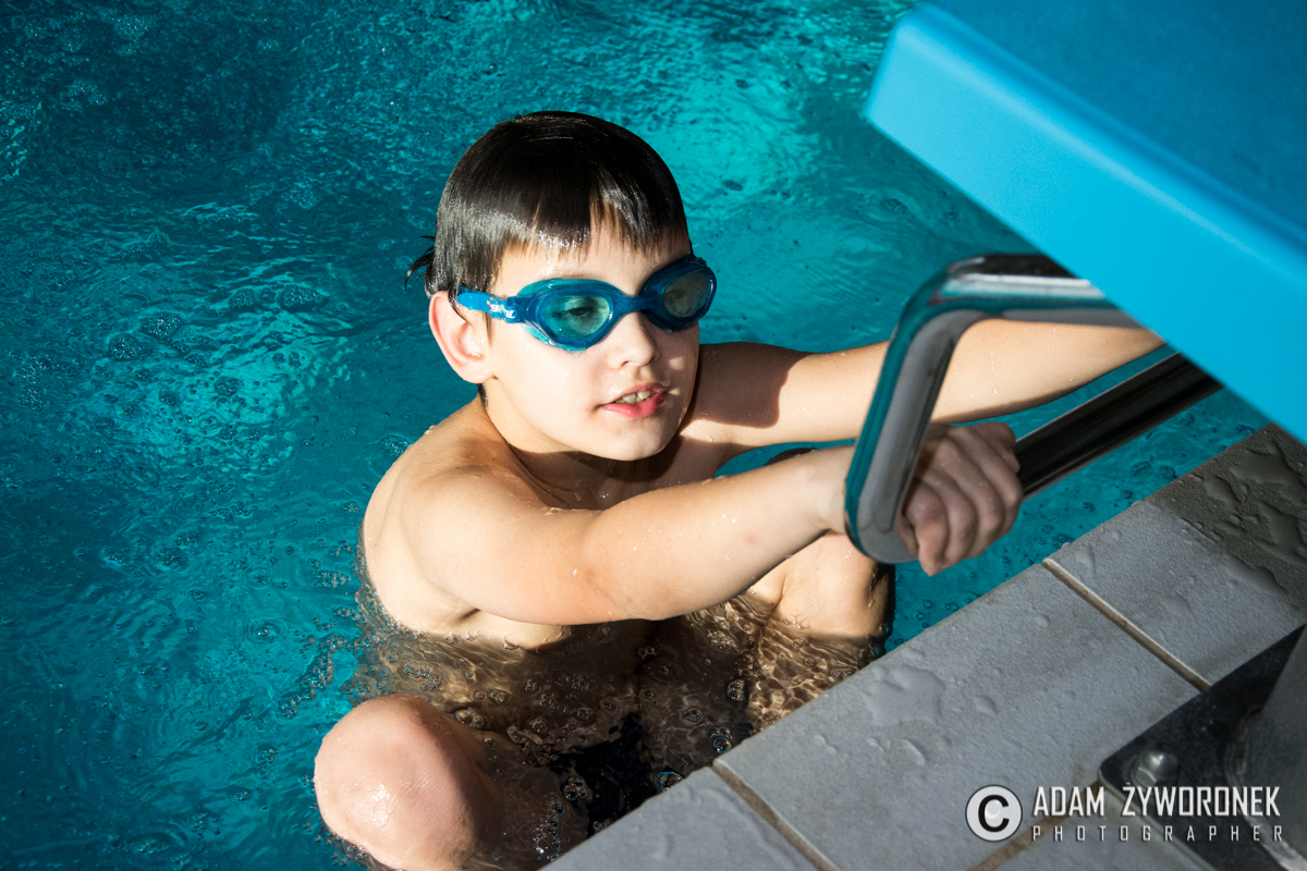 Grzegorz Kowalski trenuje od przedszkola i świetnie radzi sobie w wodzie. Zwyciężył w grupie chłopców z klas drugich, w stylu grzbietowym.