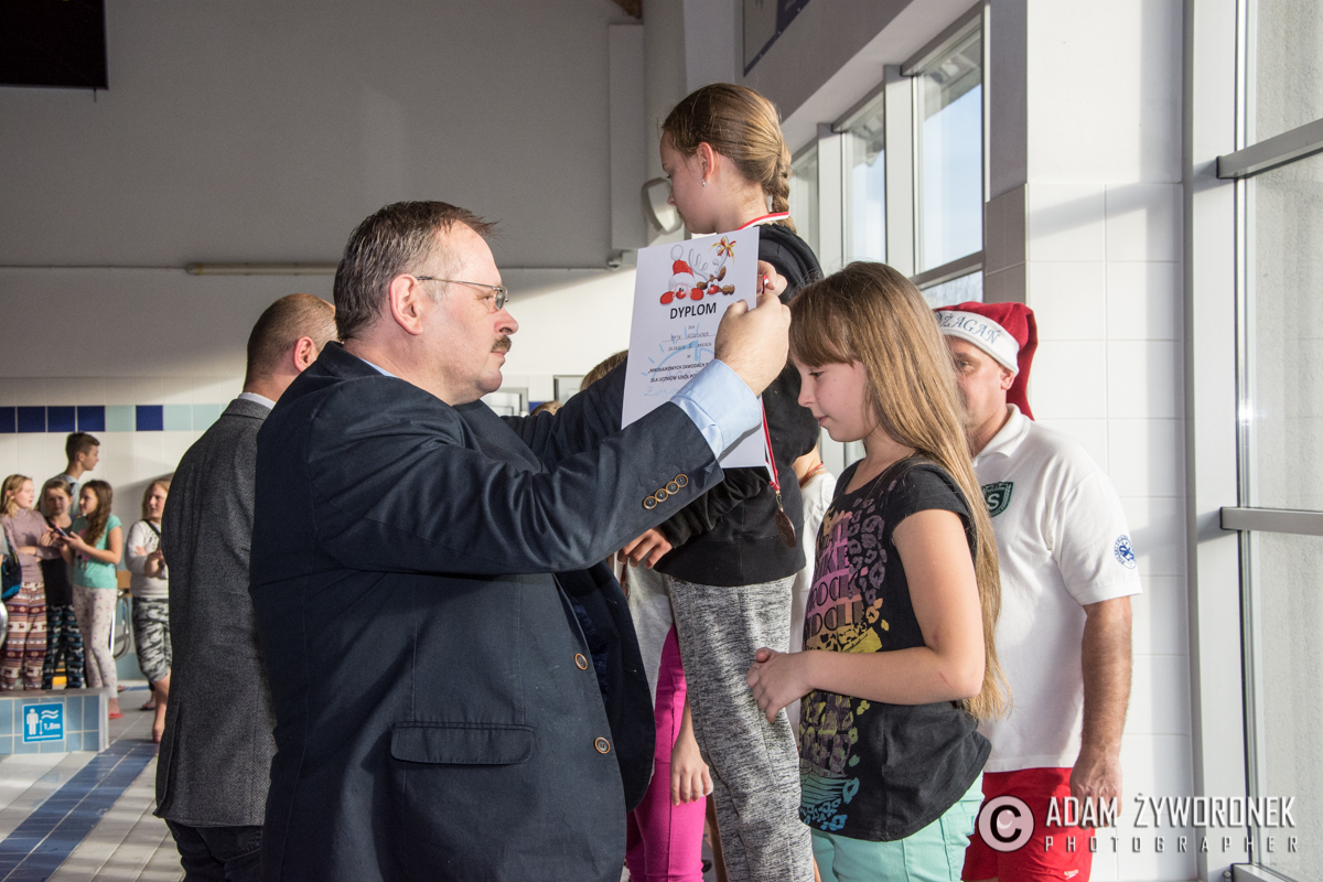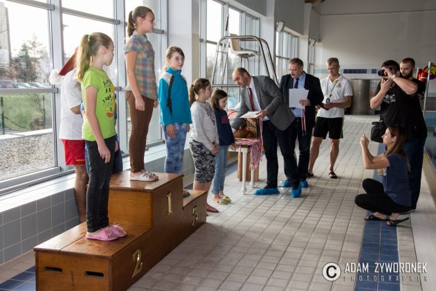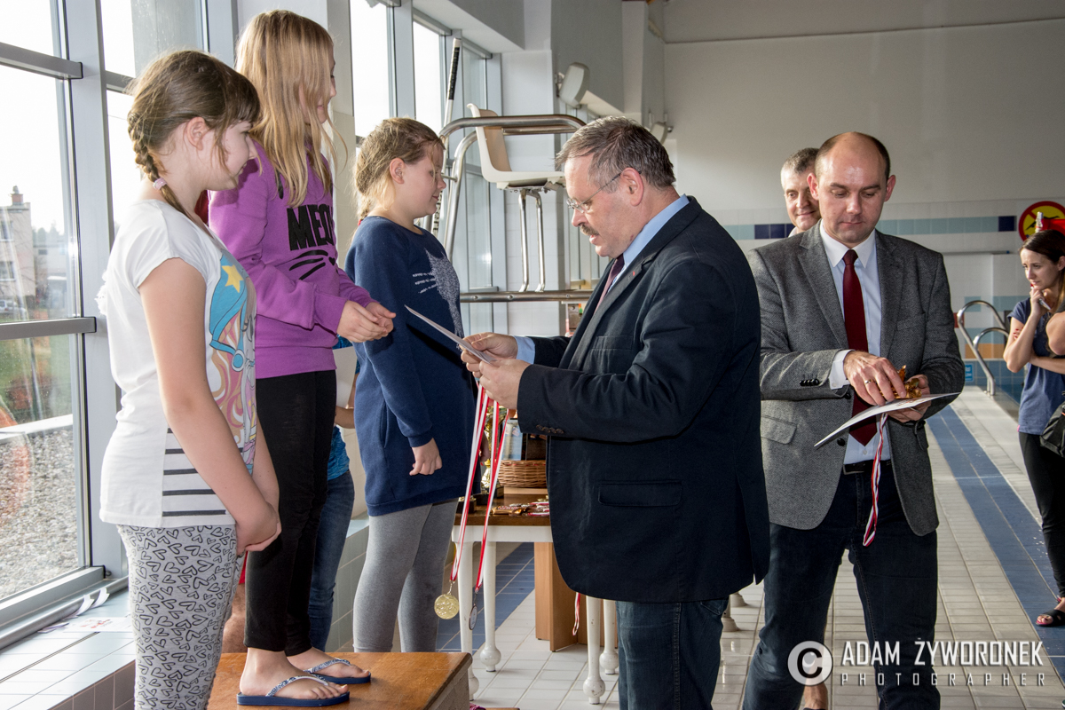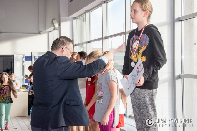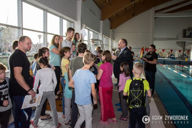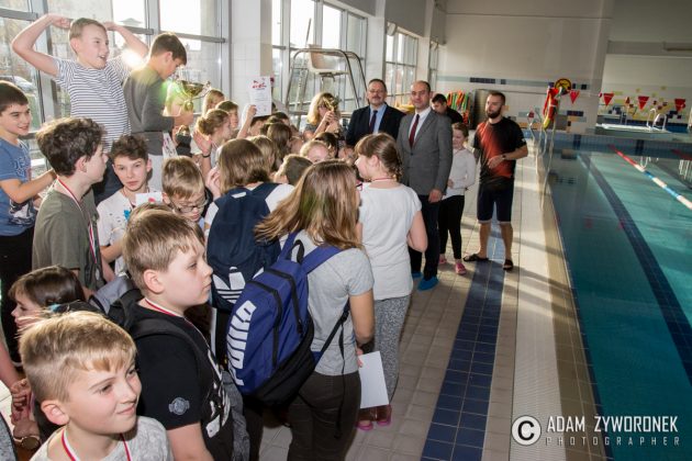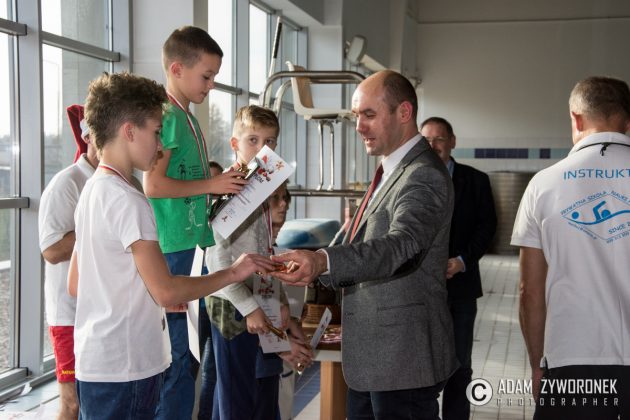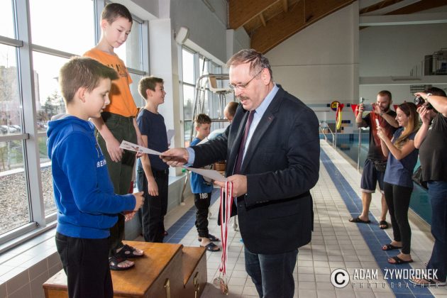 Dyplomy i medale najlepszym zawodnikom z klas IV-VI wręczał dyrektor Zbigniew Białkowski, szef Departamentu Infrastruktury i Oświaty w Urzędzie Miasta Żagań. Najmłodszym pływakom medale wręczył Paweł Lóssa, prezes miejskiej spółki Pałac Książęcy. – Miasto co roku przeznacza 180 tys. zł na naukę pływania dla dzieci – zaznacza P. Lóssa. – Dzięki dotacji w lekcjach mogą uczestniczyć nasze wszystkie szkoły podstawowe. Dzieci są przewożone na basen i odwożone autobusami MZK. Również latem zapewniamy im opiekę ratowników, podczas zabaw na kąpielisku w parku.