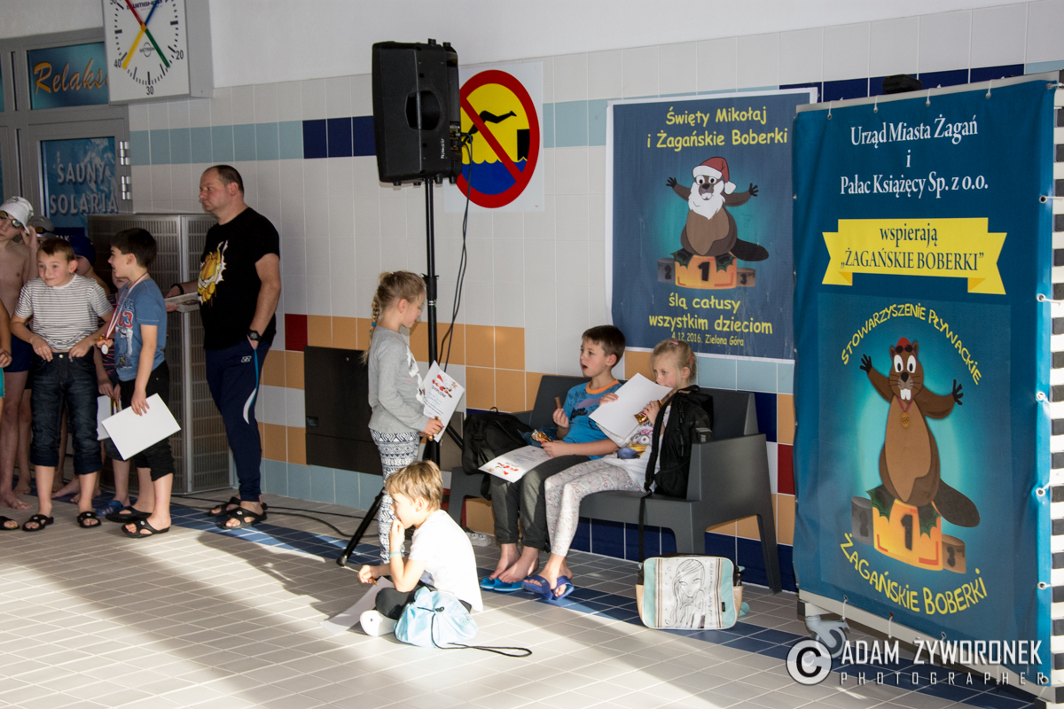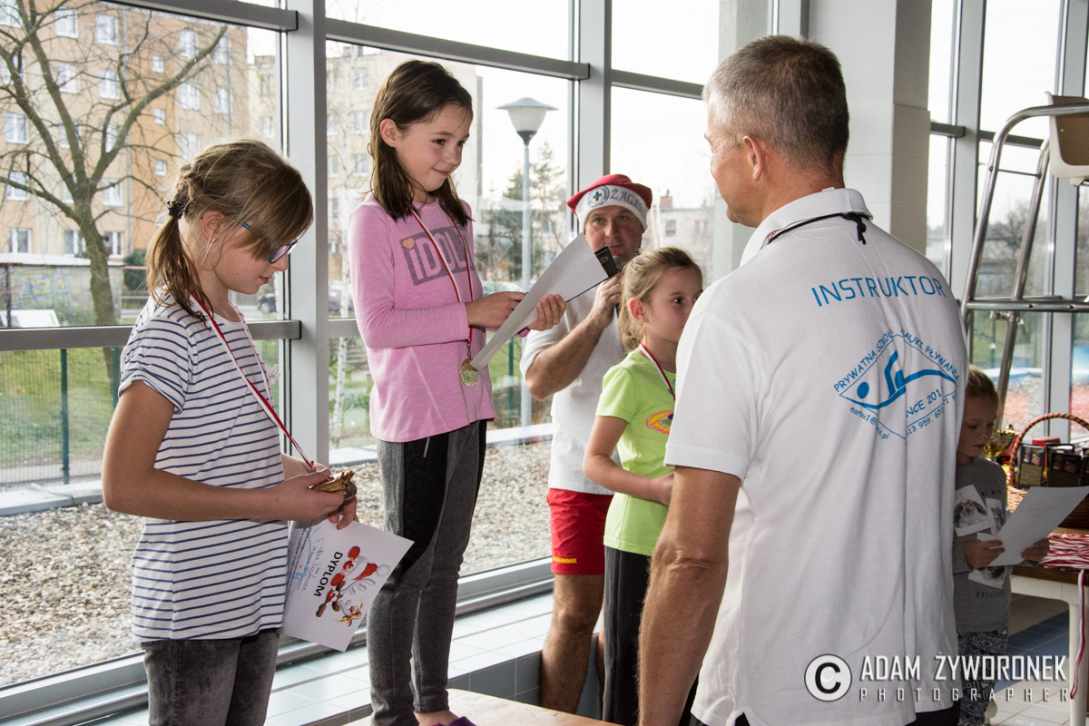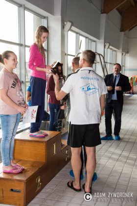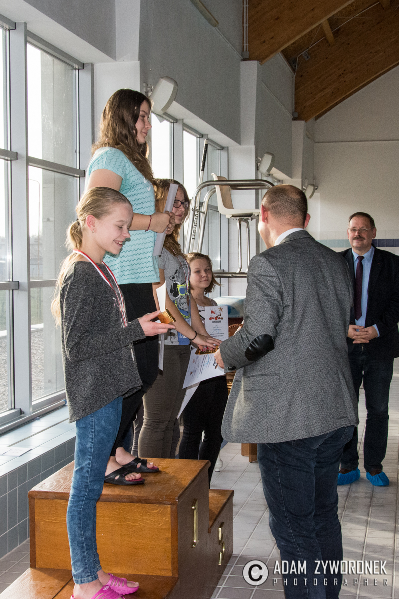 Dyplomy i medale najlepszym zawodnikom z klas IV-VI wręczał dyrektor Zbigniew Białkowski, szef Departamentu Infrastruktury i Oświaty w Urzędzie Miasta Żagań. Najmłodszym pływakom medale wręczył Paweł Lóssa, prezes miejskiej spółki Pałac Książęcy. – Miasto co roku przeznacza 180 tys. zł na naukę pływania dla dzieci – zaznacza P. Lóssa. – Dzięki dotacji w lekcjach mogą uczestniczyć nasze wszystkie szkoły podstawowe. Dzieci są przewożone na basen i odwożone autobusami MZK. Również latem zapewniamy im opiekę ratowników, podczas zabaw na kąpielisku w parku.