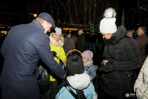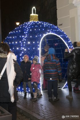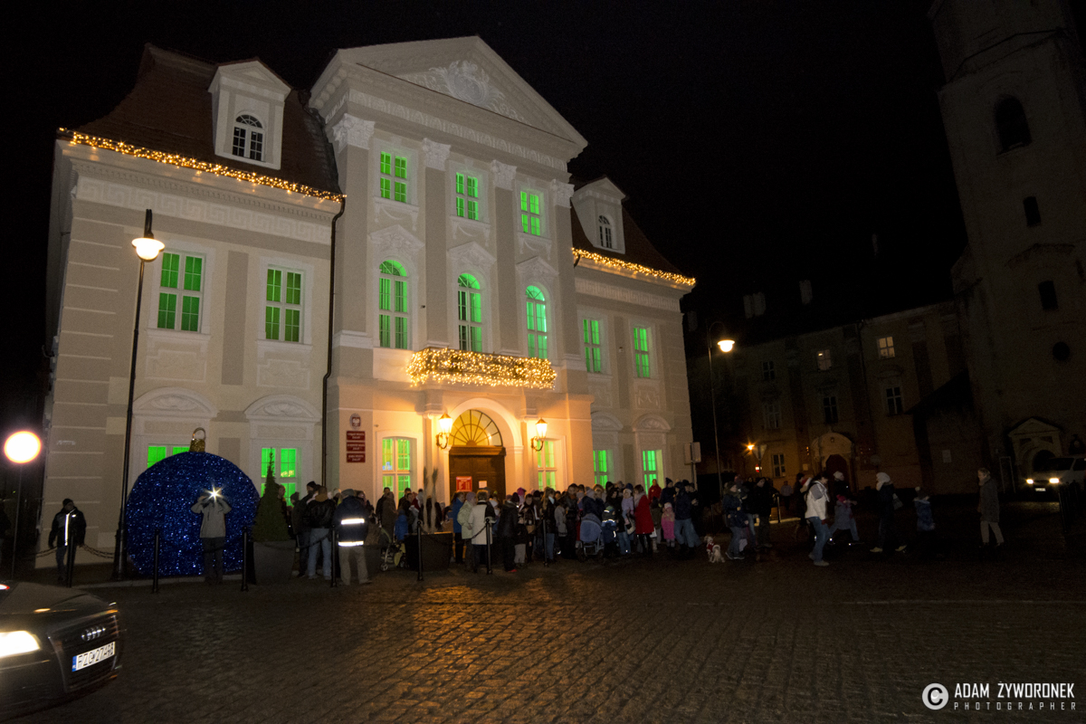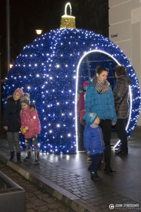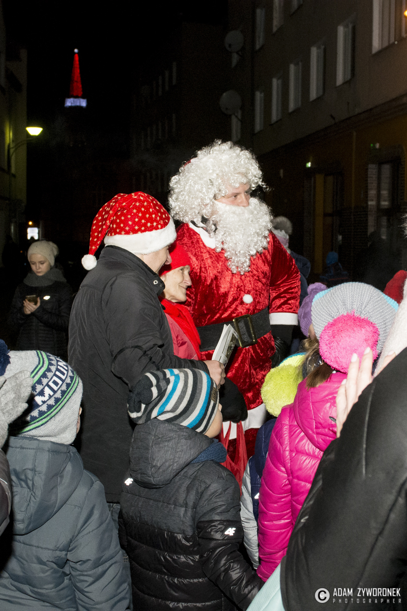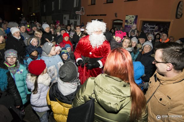 Nie były to jednak wszystkie niespodzianki przygotowane tego dnia dla mieszkańców. Mikołaj zaprosił zebranych na krótki spacer ulicą Słowackiego. Z tego miejsca wszyscy mogli zaobserwować coś wyjątkowego – na szczycie Wieży Widokowej rozbłysła największa w Polsce, a być może w Europie, świetlna czapka Świętego Mikołaja! Iglica Wieży ma 20 metrów wysokości, a pompon 1,5 metra średnicy! Dzięki tej ogromnej dekoracji jesteśmy widoczni na każdej z tras wlotowych do miasta. Czapka wita przyjezdnych i udowadnia, że Żagań jest miastem czującym ducha Świąt Bożego Narodzenia.
