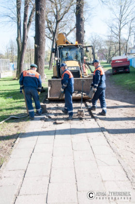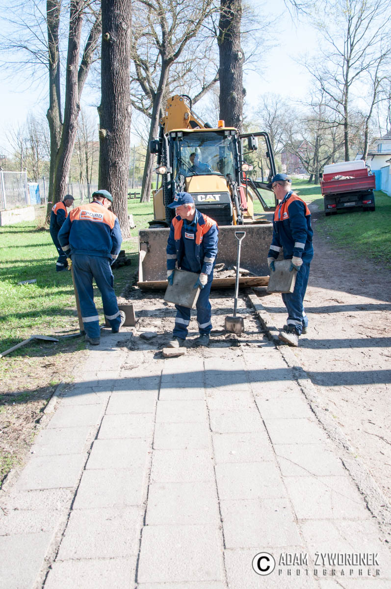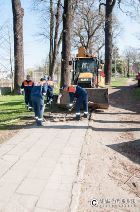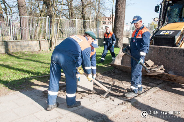 Wymieniamy stare płyty chodnikowe na nowe, z kostki granitopodobnej – tłumaczy pan Krzysztof, pracownik MPOiRD. – Te stare, połamane już się nie nadają do niczego. Natomiast całe zostaną złożone na paletach w naszym magazynie i będą wykorzystywane do napraw w innych miejscach.