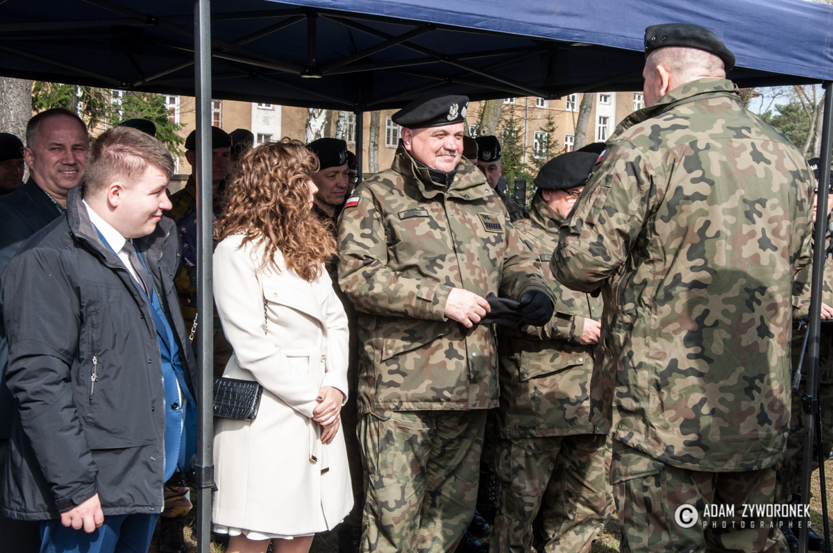– Służyłem w Żaganiu od 1974 do 1996 roku – wspominał Jerzy Anioł, który na uroczystość przyszedł wraz z wnukiem Adamem. – Od prawie 20 lat jestem w rezerwie, ale przychodzę na wszystkie wojskowe uroczystości. Z wielką przyjemnością oglądam defilady pokazy sprzętu, itp. Mogę powiedzieć, że od czasu mojej służby wojsko bardzo się zmieniło. Kiedyś wszystko było tajne, bo „wróg czuwał”. Nie było mowy o pokazach sprzętu. Dzisiaj to się bardzo zmieniło. Można wejść do czołgu, dotknąć broni i wziąć udział w pokazach. Również nasi sojusznicy się zmienili. Teraz w Żaganiu są Amerykanie. To bardzo mili i uprzejmi ludzie. Często spotykamy ich w mieście. Nawet jeśli ktoś nie zna języka, to i tak witają się ze wszystkimi uprzejmie.