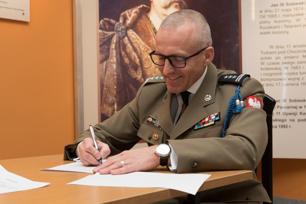W trakcie spotkania w żagańskiej Sali Tradycji pułkownik Cezary Kiszkowiak – Attache Obrony RP w Kanadzie przekazał Szefowi Wydziału Wychowawczemu podpułkownikowi Waldemarowi Szczepaniakowi dar polskich kombatantów z Ottawy. Jest to mundur „battle dress” w barwach 1.pułku artylerii przeciwpancernej, który należał do Mieczysława Makucha żołnierza generała Maczka. Walczył on w obronie Polski we wrześniu 1939 roku w składzie 10 Brygady Kawalerii, a później jako przeciwpancerniak przemierzył cały szlak bojowy 1. Polskiej Dywizji Pancernej (1.PDPanc) od Normandii do Wilhelmshaven.