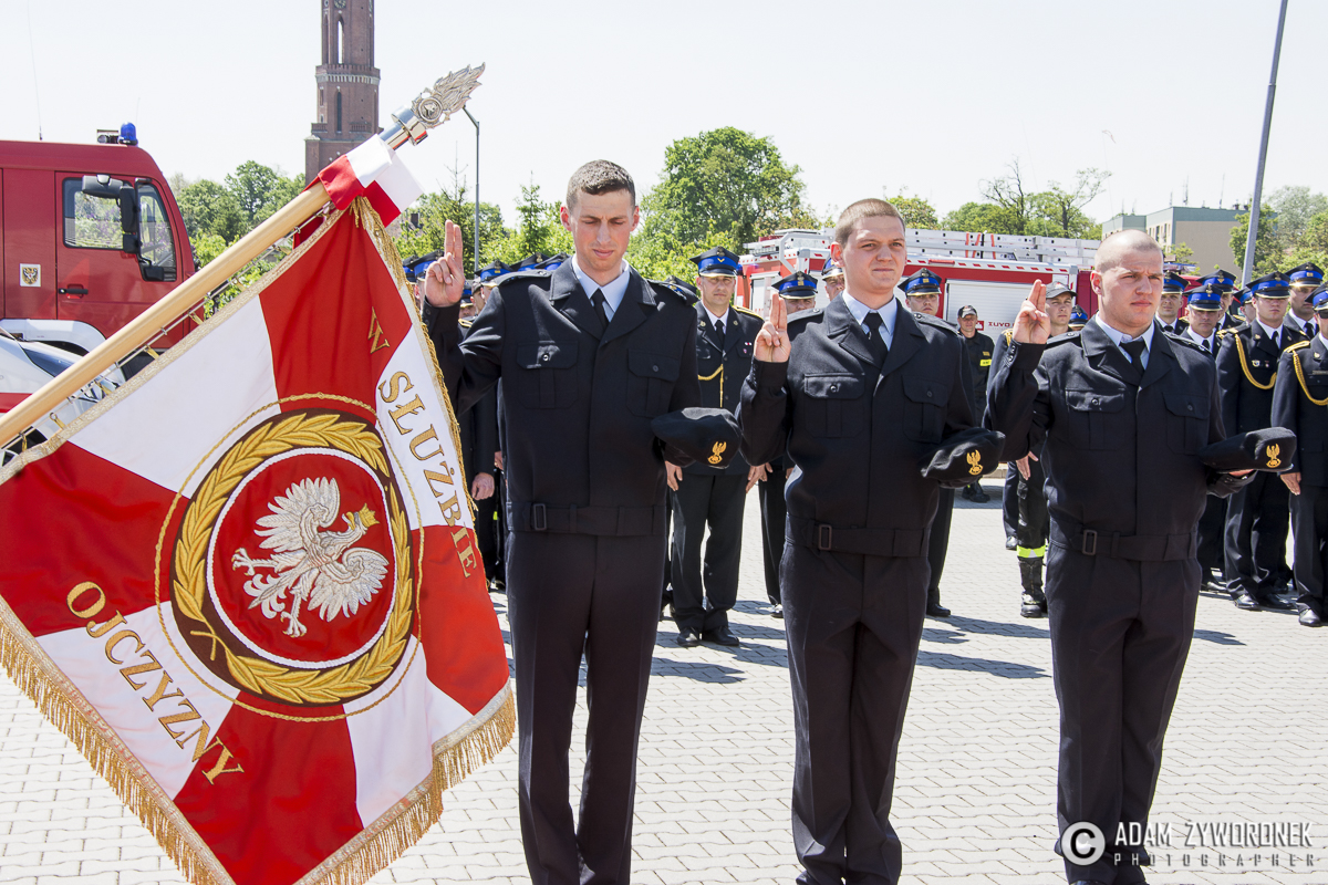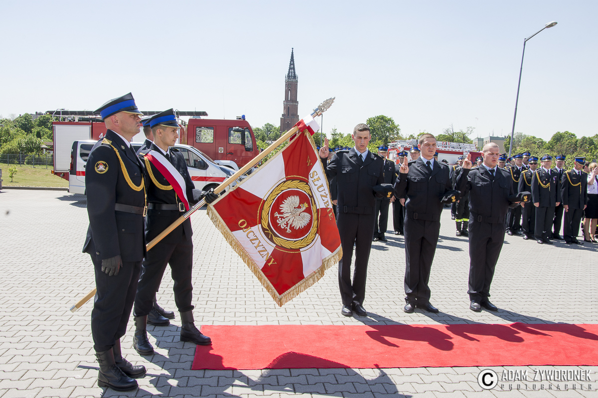 Strażacy świętowali w piątek (19 maja). Dzień św. Floriana był okazją do złożenia ślubowania przez trzech nowych strażaków: Damiana Razmusa, Daniela Harendarza i Wojciecha Urbaniaka. – Mamy 15 jednostek Ochotniczej Straży Pożarnej – wyliczył z dumą starszy kapitan Marek Ławrecki, komendant powiatowy PSP. – W czerwcu ogłaszamy przetarg na wykonawstwo robót na budowie nowej siedziby dla Jednostki Ratowniczo Gaśniczej w Szprotawie. Dzięki burmistrzowi Żagania i wójtowi gminy Żagań cieszymy się z nowego samochodu.