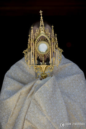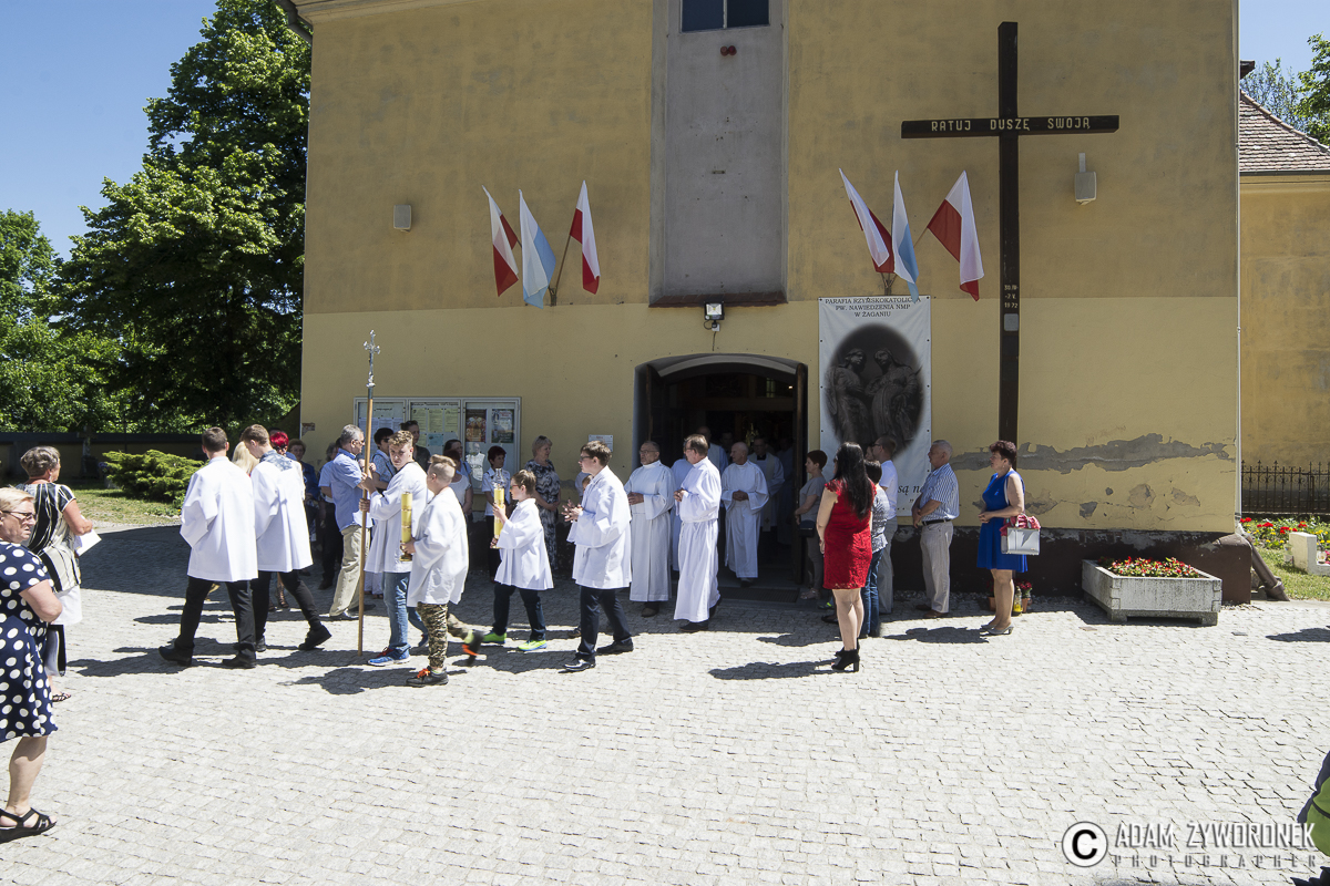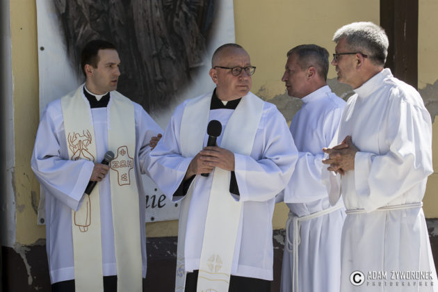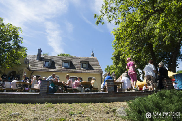 W niedzielę 28 maja parafia “Na Górce” przeżywała uroczystość odpustu. Po mszy świętej o godz 11.00 dzieci przedstawiły przed kościołem współczesną wersję Nawiedzenia NMP. W asyście muzyki i śpiewu wszyscy przeszli przed dom katechetyczny, gdzie był przygotowany świąteczny posiłek – setki pierogów, krokietów, wojskowa grochówka, bigos i na deser dziesiątki blach ciasta. W trakcie posiłku występowali: schola dziecięca, zespół Jodełki, Żagańska Lutnia oraz trio akordeonistów. Licytowano również na remont dachu domu katechetycznego atrakcyjne fanty: np. koszulkę reprezentacyjną Roberta Lewandowskiego z jego autografem, kompletny strój strażaka, koszulkę z biegu maratońskiego w Nowym Jorku… Ogłoszono także wyniki odpustowych konkursów – plastycznego i fotograficznego. Prace można oglądać w kościele na Górce.