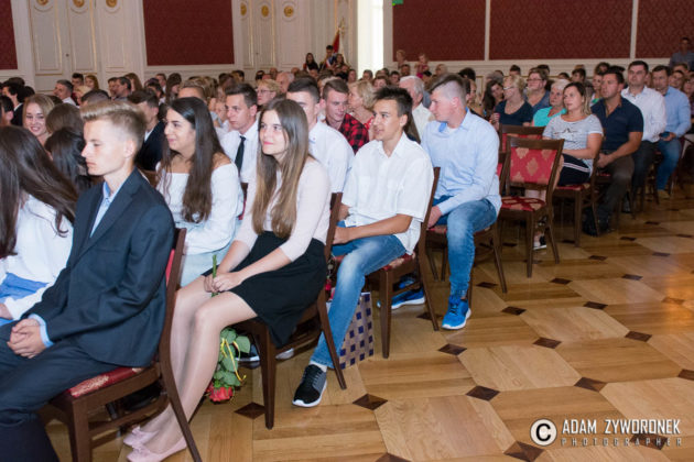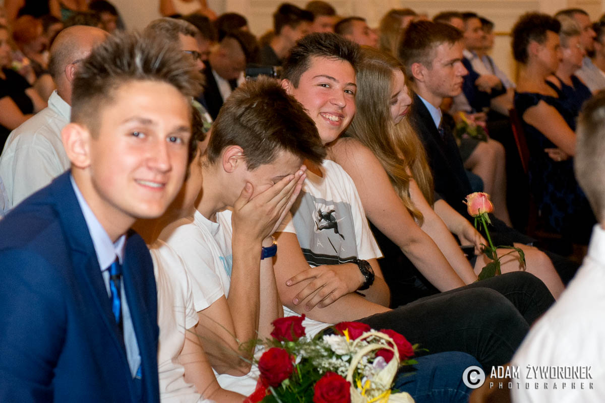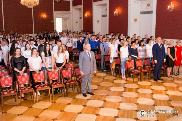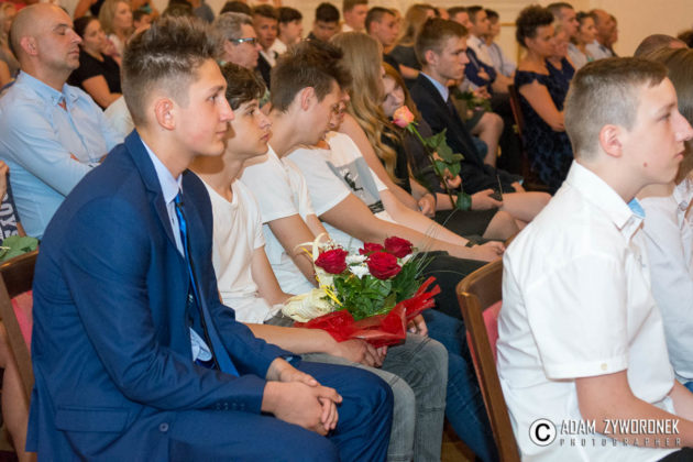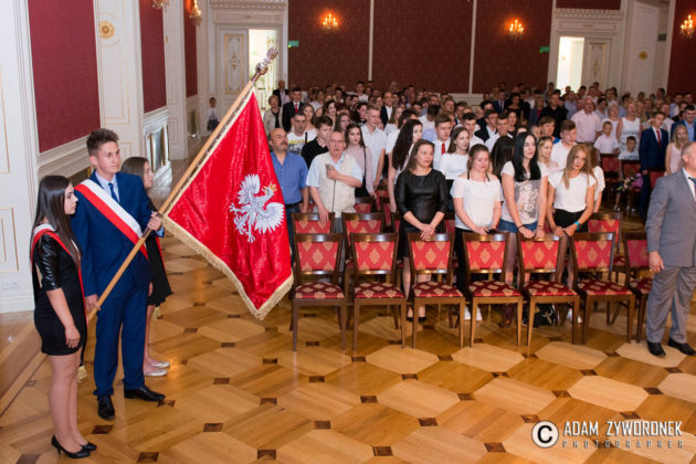 Ostatnie klasy gimnazjalne zakończyły rok już w czwartek. W Zespole Szkół nr 1 w sali gimnastycznej, zaś klasy trzecie z Zespołu Szkół nr 2 w Sali Kryształowej Pałacu Książęcego. – Rok wcześniej kończyliśmy zajęcia na naszym korytarzu szkolnym – wyjaśnił nam Tomasz Szewczyk, dyrektor placówki. – Ale to nie było dobre rozwiązanie. Było duszno, a osoby, które stały dalej, miały do pokonania dużą odległość. W tym roku poprosiliśmy spółkę Pałac Książęcy o udostępnienie sali Kryształowej i otrzymaliśmy zgodę. Bardzo się cieszymy, bo to wspaniała oprawa dla naszej uroczystości.