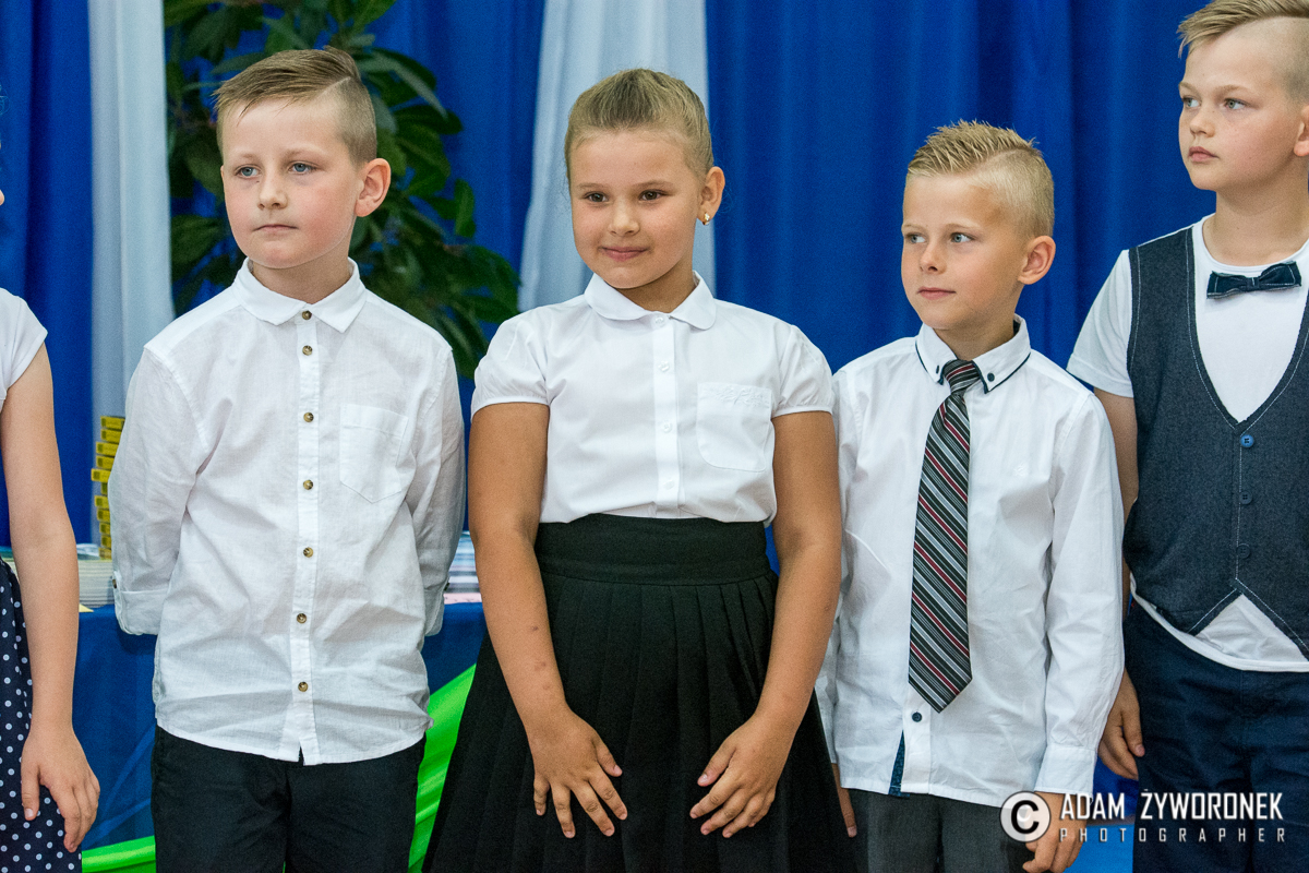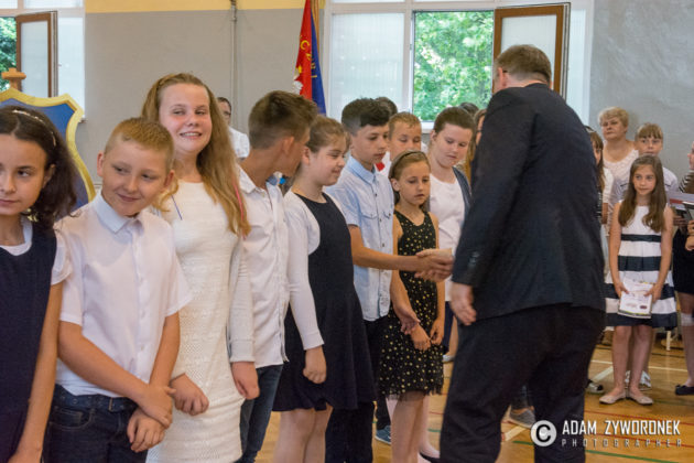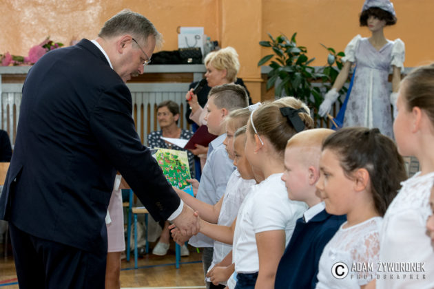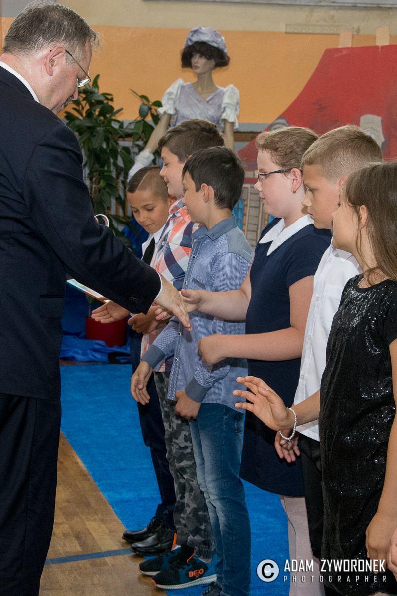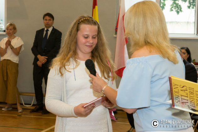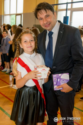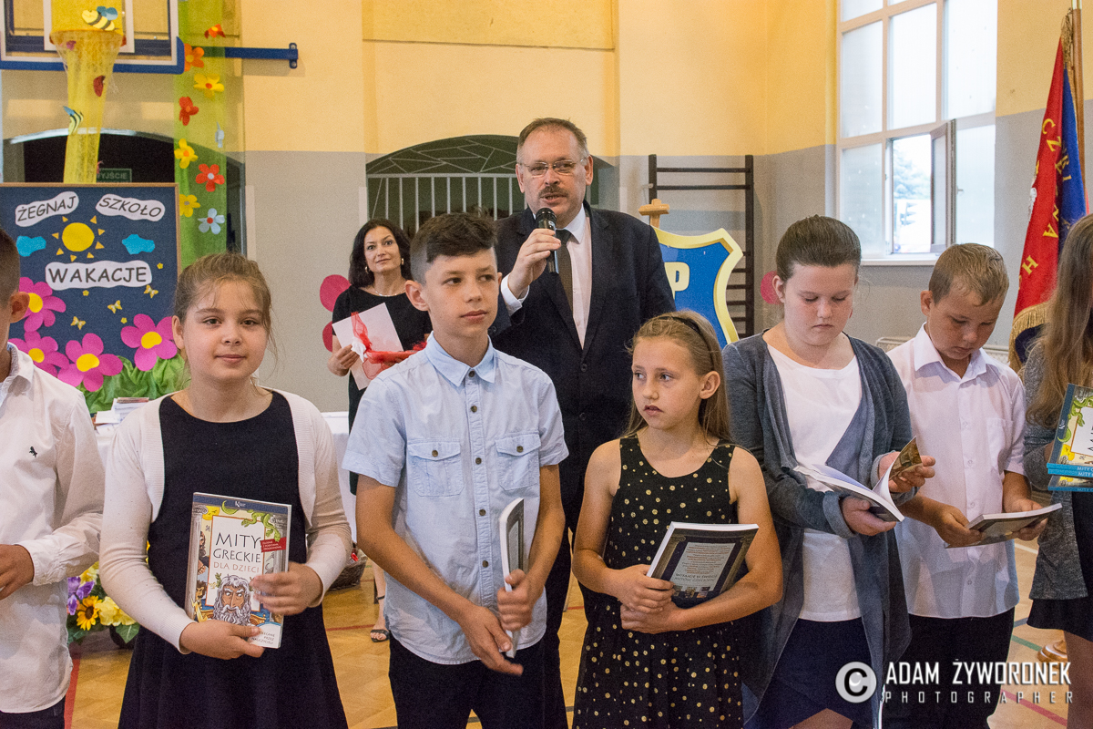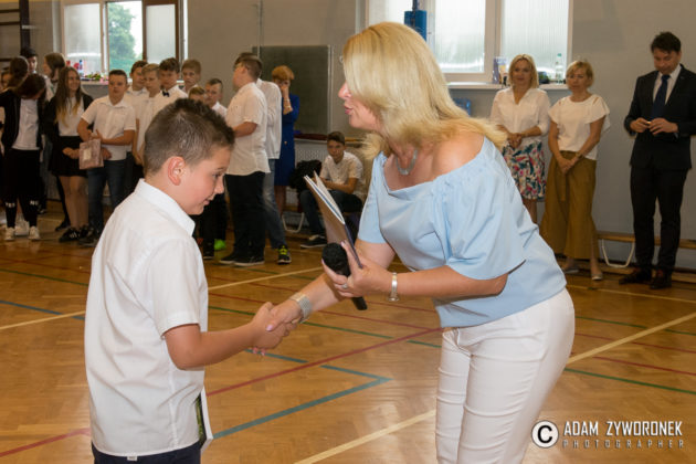 Najwyższą średnią w całej szkole: 5,55 osiągnęli Małgorzata Stąpel z kl. VI A, Amelka Dziczkaniec z klasy VI B, Emanuele Przybylski z kl. IV B i Maja Trzcińska z IV B. Wszyscy otrzymali nagrody w postaci książek od burmistrza Daniela Marchewki i dyrektor Małgorzaty Kalinowskiej. – Wszyscy bierzecie udział w konkursach i zajmujecie wysokie lokaty – powiedziała swoim uczniom dyrektorka. – Dzięki wam cała szkoła osiąga wspaniałe wyniki.