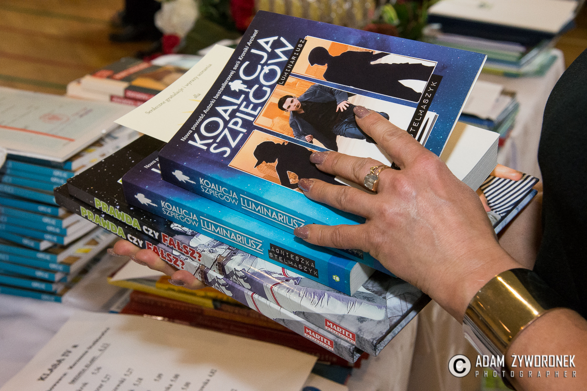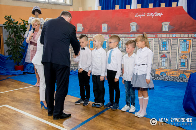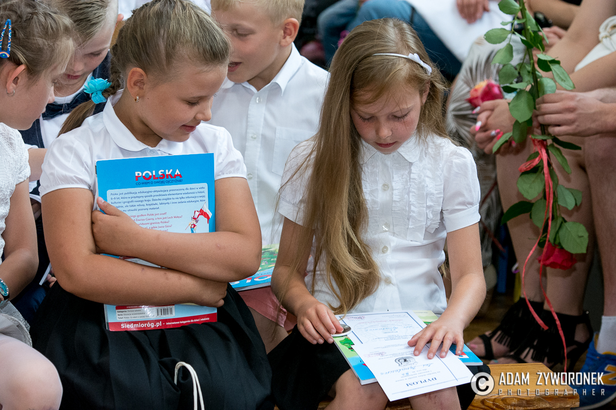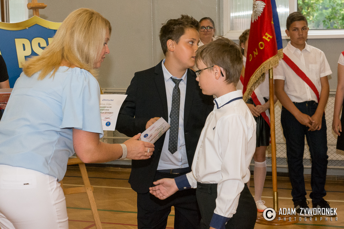 Najwyższą średnią w całej szkole: 5,55 osiągnęli Małgorzata Stąpel z kl. VI A, Amelka Dziczkaniec z klasy VI B, Emanuele Przybylski z kl. IV B i Maja Trzcińska z IV B. Wszyscy otrzymali nagrody w postaci książek od burmistrza Daniela Marchewki i dyrektor Małgorzaty Kalinowskiej. – Wszyscy bierzecie udział w konkursach i zajmujecie wysokie lokaty – powiedziała swoim uczniom dyrektorka. – Dzięki wam cała szkoła osiąga wspaniałe wyniki.