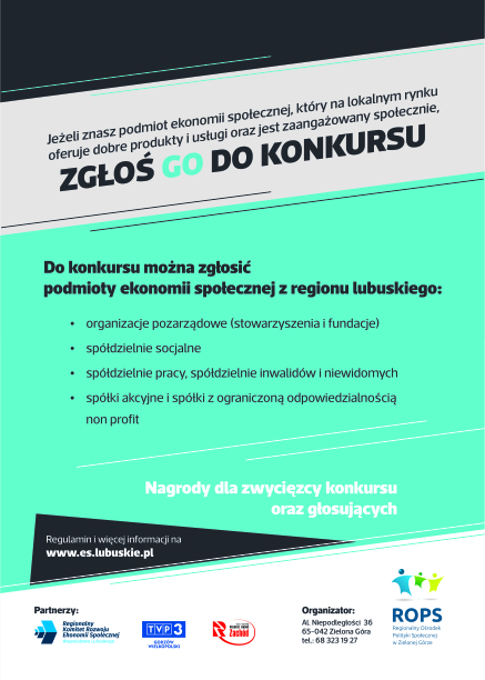 Na stronie www.es.lubuskie.pl dostępny jest REGULAMIN KONKURSU – KLIKNIJ TUTAJ, a także formularz w wersji do druku, który można przesłać pocztą tradycyjną na adres Regionalnego Ośrodka Polityki Społecznej w Zielonej Górze.