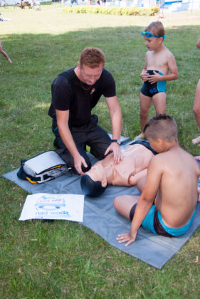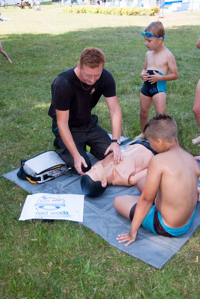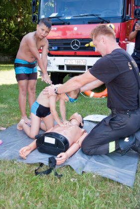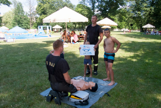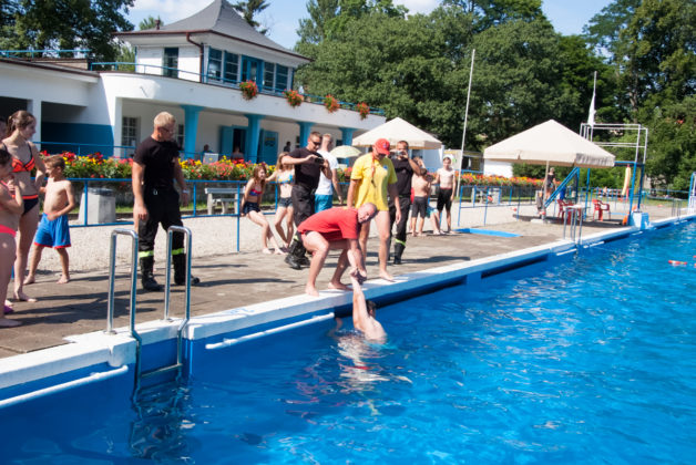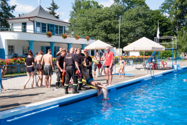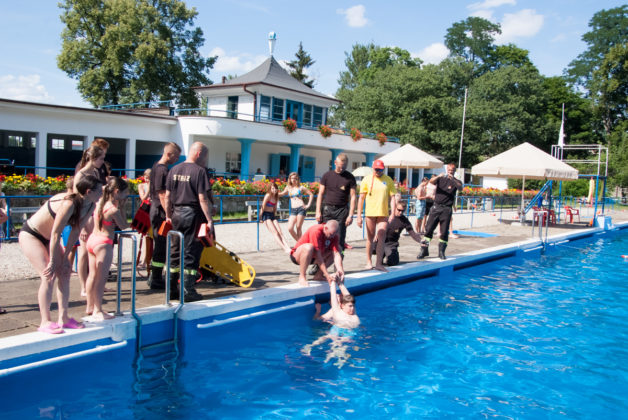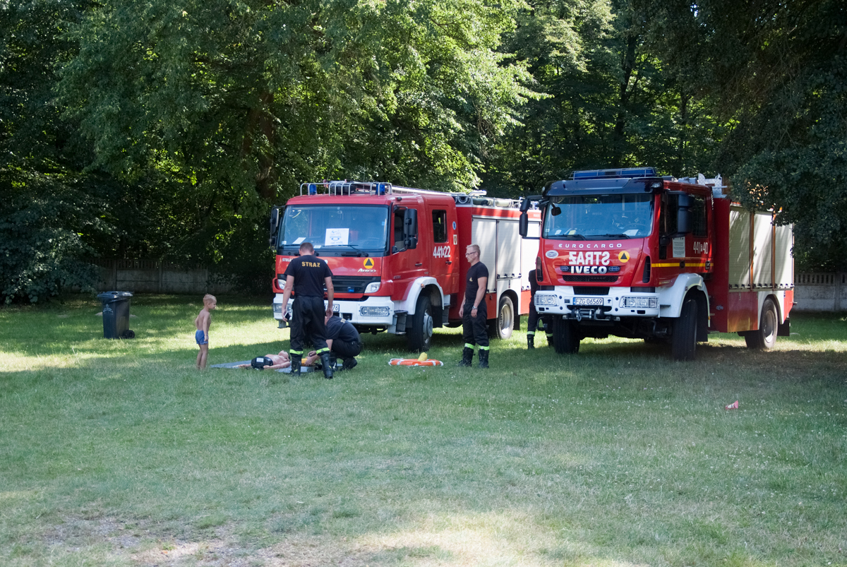 We wtorek 18 lipca na kąpielisku miejskim w Żaganiu strażacy wraz z ratownikami zorganizowali pokaz ratowania tonącego oraz udzielania pierwszej pomocy.