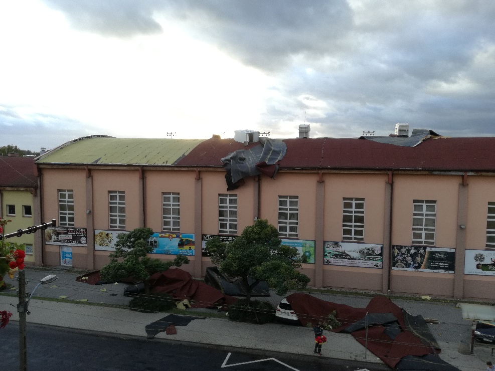 Tak wyglądał dach hali sportowej po przejściu orkanu Ksawery.