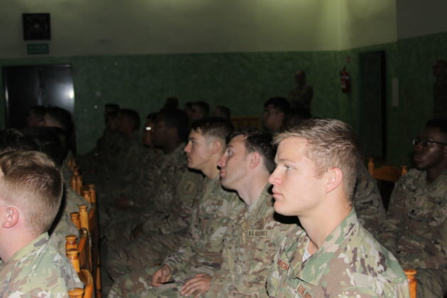 Odwiedziliśmy żołnierzy podczas szkolenia w sali kinowej Klubu Garnizonowego. Oglądali filmy poglądowe o polskiej historii, uwzględniające również m.in. bitwę pod Lenino. Mogli posłuchać pieśni wojskowej Oka – piosenka powstała w lipcu 1943 r. w obozie 1 Dywizji im. Tadeusza Kościuszki w Sielcach nad Oką.