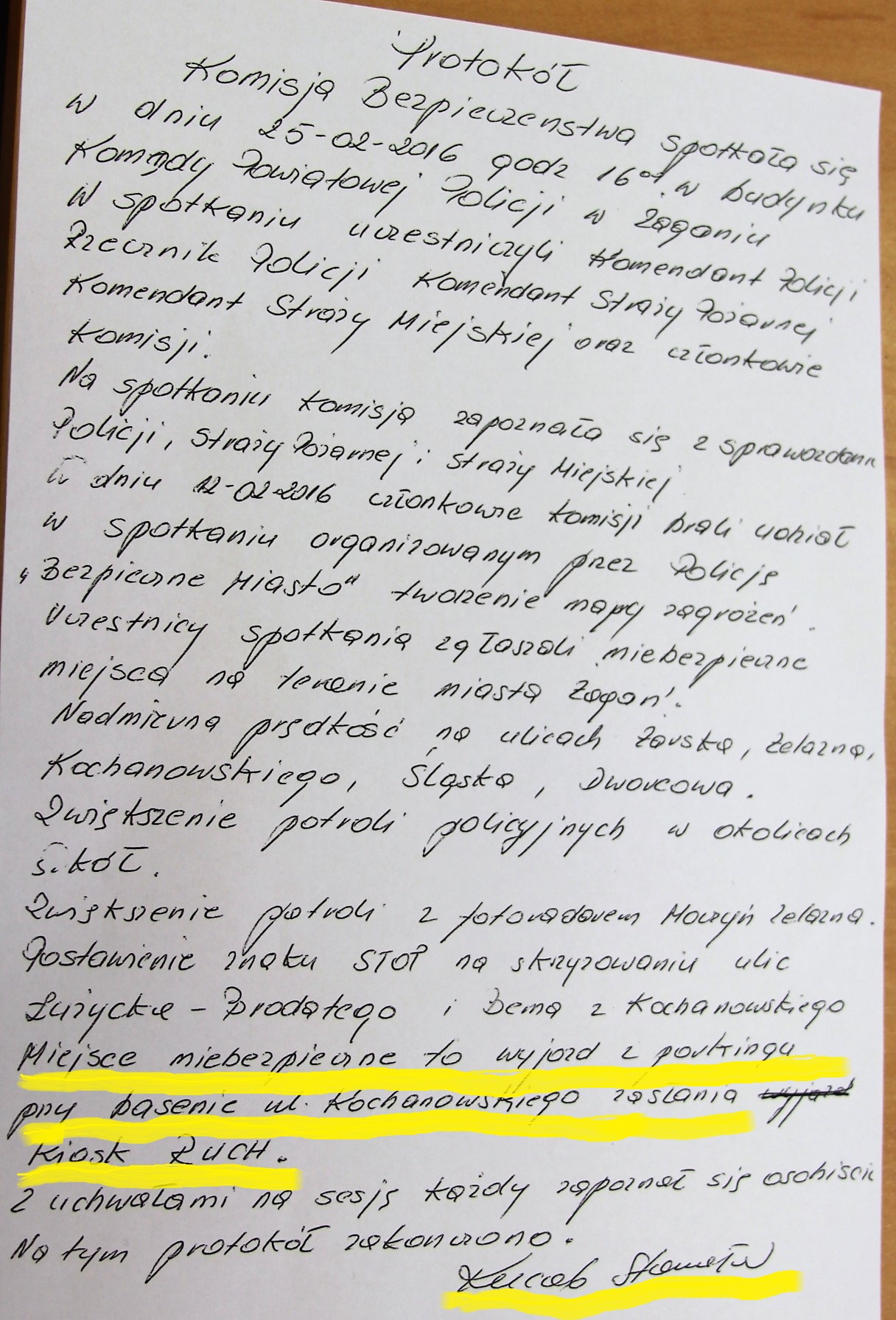 Problem radnego Łosia polegał na tym, że gdyby nie kiosk, nie zostałby radnym. A będąc radnym nie mógł prowadzić kiosku na mieniu gminy. Dlatego z opozycjonisty wobec byłego burmistrza Sławomira Kowala stał się jego obrońcą, w zamian za podpisanie umowy najmu gruntu z jego córką. Nie mogli mu tego wybaczyć radni, z którymi startował z listy; świętej pamięci Mirosław Ramza i Stanisław Kucab, który będąc przewodniczącym komisji bezpieczeństwa jako pierwszy wystąpił z interwencją w sprawie tego punktu i żądał jego przeniesienia ze względów bezpieczeństwa. Jest nawet zapis w protokole z posiedzenia komisji w tej sprawie. Prawda jest taka, że gdy wiele lat temu powstawał tam kiosk, nie było jeszcze basenu i tylu samochodów. Z czasem problem stał się bardzo poważny. Mieszkańcy interweniowali u prezesa spółki Pałac Książęcy pana Pawła Lóssy, który nie miał innego wyjścia, musiał zareagować. Radny Łoś z córką zwracali się do nas o wyrażenie zgody na inną lokalizację i ją bez problemu uzyskali. Nie chcę komentować kontekstu wmieszania mnie w całą sprawę. Radny stara się w ten sposób uzyskać status pokrzywdzonego opozycjonisty i zbijać kapitał polityczny przed wyborami. Rozbiórka kiosku była również świetną okazją do tego, aby były prezes miejskiej spółki i kandydat na burmistrza pokazywał jak pomaga koledze. Mieszkańcy twierdzą, że wystarczyło, aby za darmo wynajął mu lokal na tej samej ulicy Kochanowskiego, 200 metrów od dotychczasowego kiosku. Tam jest teraz piękny parking, który wybudował powiat żagański. Ale panowie chyba się nie dogadali co do ceny. Radnego Łosia wspierał również pan starosta, pozując na kucaka do zdjęć. Było bardzo miło, wszyscy byli radośni i uśmiechnięci, co pokazała jedna z lokalnych gazet. Na Facebooku pracownik starostwa i sąsiad wspomnianego powyżej byłego prezesa poruszył temat kiosku i kilku jego kompanów wysłało pod moim adresem „bluzgi” i groźby karalne. Gazety miały o czym pisać. Opozycja zapaliła znicze i zrobiła szopkę. A prawda jest taka, że gdy powstał basen (w 2011 roku), powinien zniknąć kiosk (stanąć w innym miejscu). I to teraz widać gołym okiem.