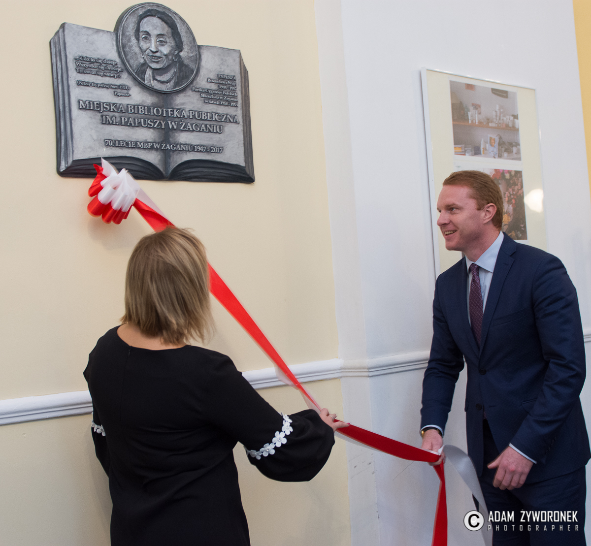 Uroczystość w sali Kryształowej Pałacu Książęcego poprzedziło odsłonięcie tablicy pamiątkowej poświęconej Bronisławie Wajs, patronce biblioteki, która ma swoje miejsce w pałacowym holu, obok wejścia do oddziału dla dorosłych. – Wybór patrona nie był łatwy – zaznaczyła Magdalena Śliwak, dyrektorka MBP podczas uroczystości w sali Kryształowej. – Został poprzedzony głębokim namysłem. Papusza to bardzo ważna postać w naszej literaturze, a jej najbardziej płodne lata przypadły właśnie na czas pobytu w Żaganiu.
