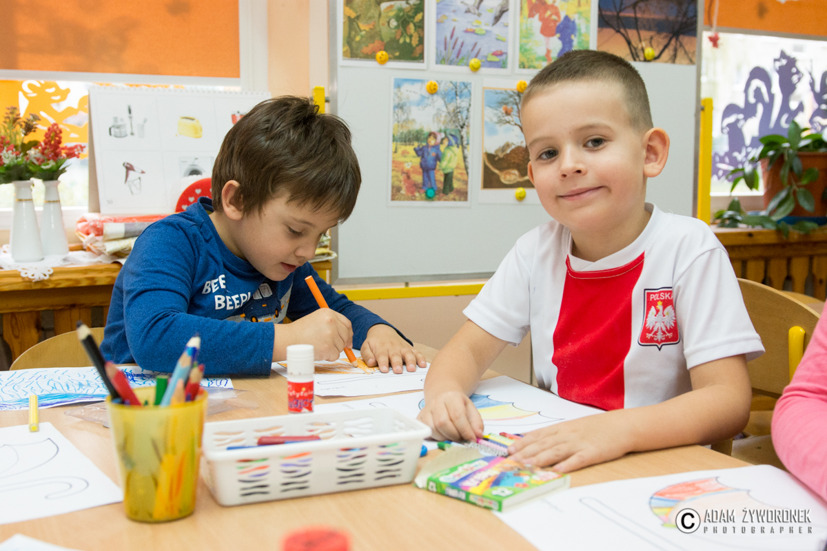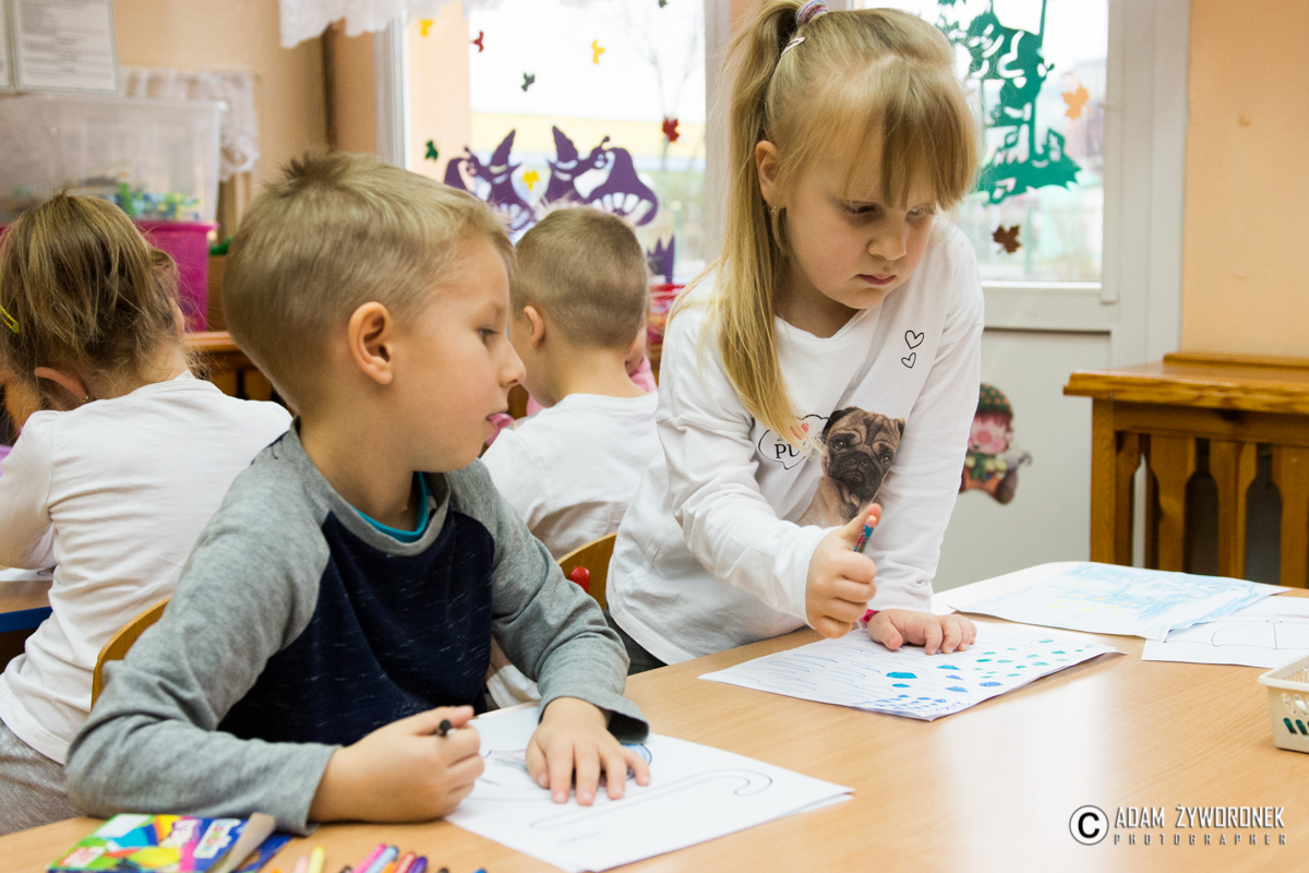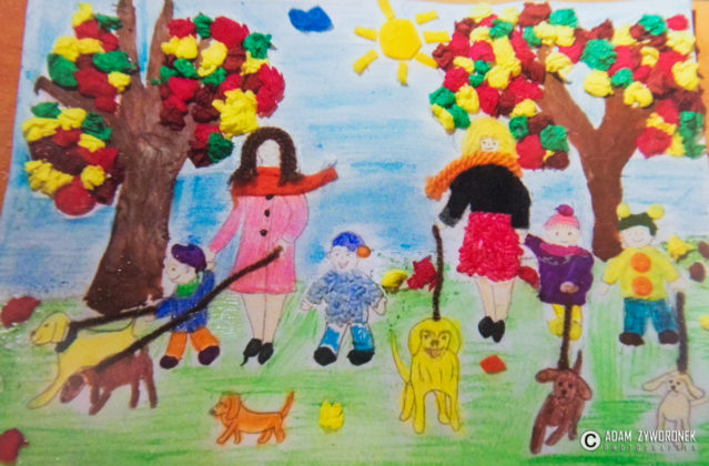 Prace wraz z dziećmi wykonała nauczycielka Magdalena Sołtys. – Tematem prac byli mali superbohaterowie – opowiada M. Sołtys. – My przedstawiliśmy przedszkolaków jako superbohaterów zbierających karmę itp. dla miejskiego przytuliska.