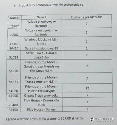Konkurs zorganizowała firma produkująca zabawki. Nagrodą dla przedszkolaków będzie przekazanie klocków, puzzli edukacyjnych, trasy z miastem, garażu z czterema kondygnacjami i innych gadżetów o łącznej wartości ponad 1,3 tys. zł. – Dzieci będą je testować i napiszemy sprawozdanie – wyjaśnia Beata Niemiec, dyrektorka placówki. – Ostatecznie przejdą one na własność placówki. Najwięcej dostaną Biedronki, ale będą się nimi cieszyły również dzieci z innych grup. Zabawki tej firmy są solidne i wytrzymałe. Z pewnością posłużą przedszkolakom przez dłuższy czas.