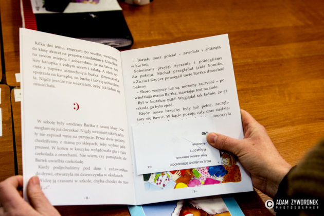 Bibliotekarka przeczytała dzieciom książkę o dziewczynce chorej na serce Aleksandry Chmielewskiej, z cyklu „Bajki bez barier”, wydawanych przez Stowarzyszenie Rodziców Dzieci Niepełnosprawnych „Światełko”. To bajki terapeutyczne, mówiące o ludziach z różnymi schorzeniami. Dotyczą m.in. autyzmu, zespołu Aspergera, cukrzycy itp.