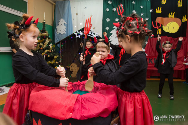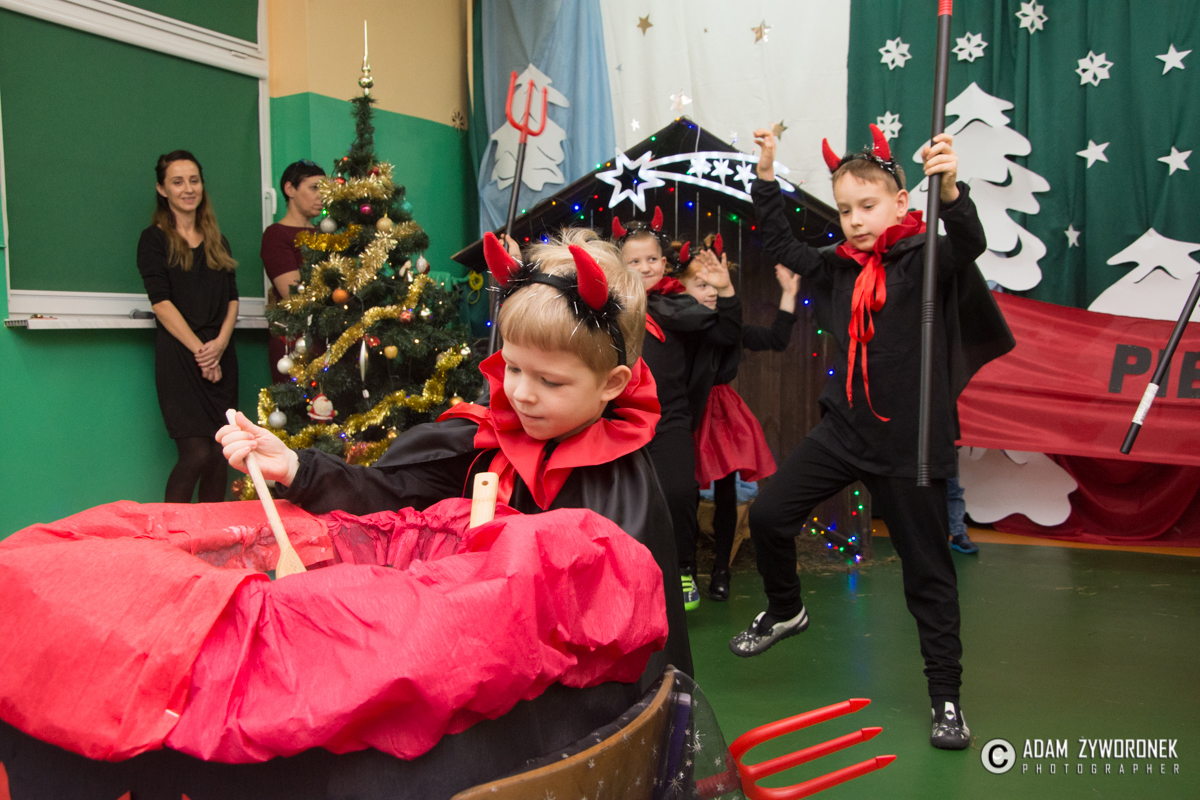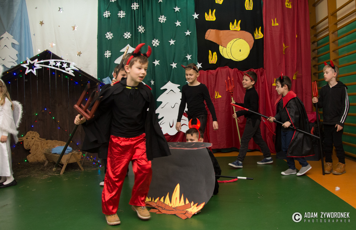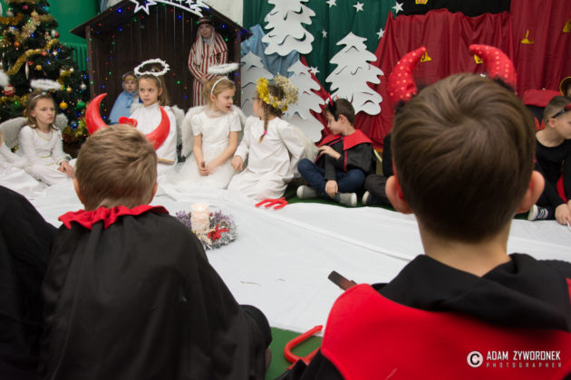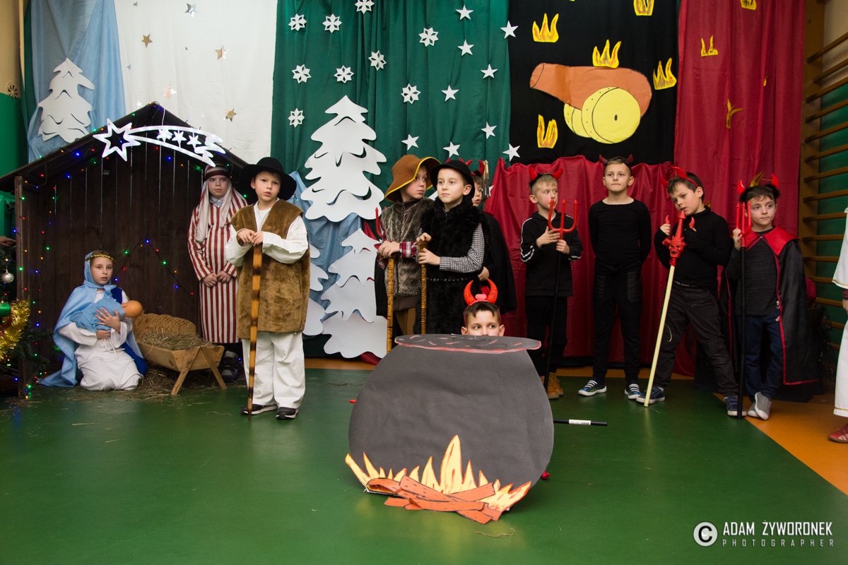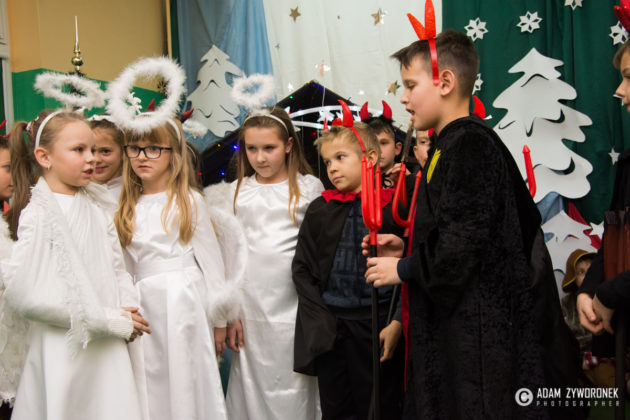 Spektakl odbył się w środę 20 grudnia, a przygotowali go uczniowie klas 0-III wraz z nauczycielkami: Anną Krych, Danutą Gorczycą, Mariolą Rulewską i Magdaleną Bocianiak. Niósł ze sobą przesłanie, że w Święta Bożego Narodzenia zapominamy o niesnaskach i kłótniach. To czas, w którym razem zasiadamy przy wspólnym stole wigilijnym, o czym przypomniała zebranym dyrektor Danuta Urban.