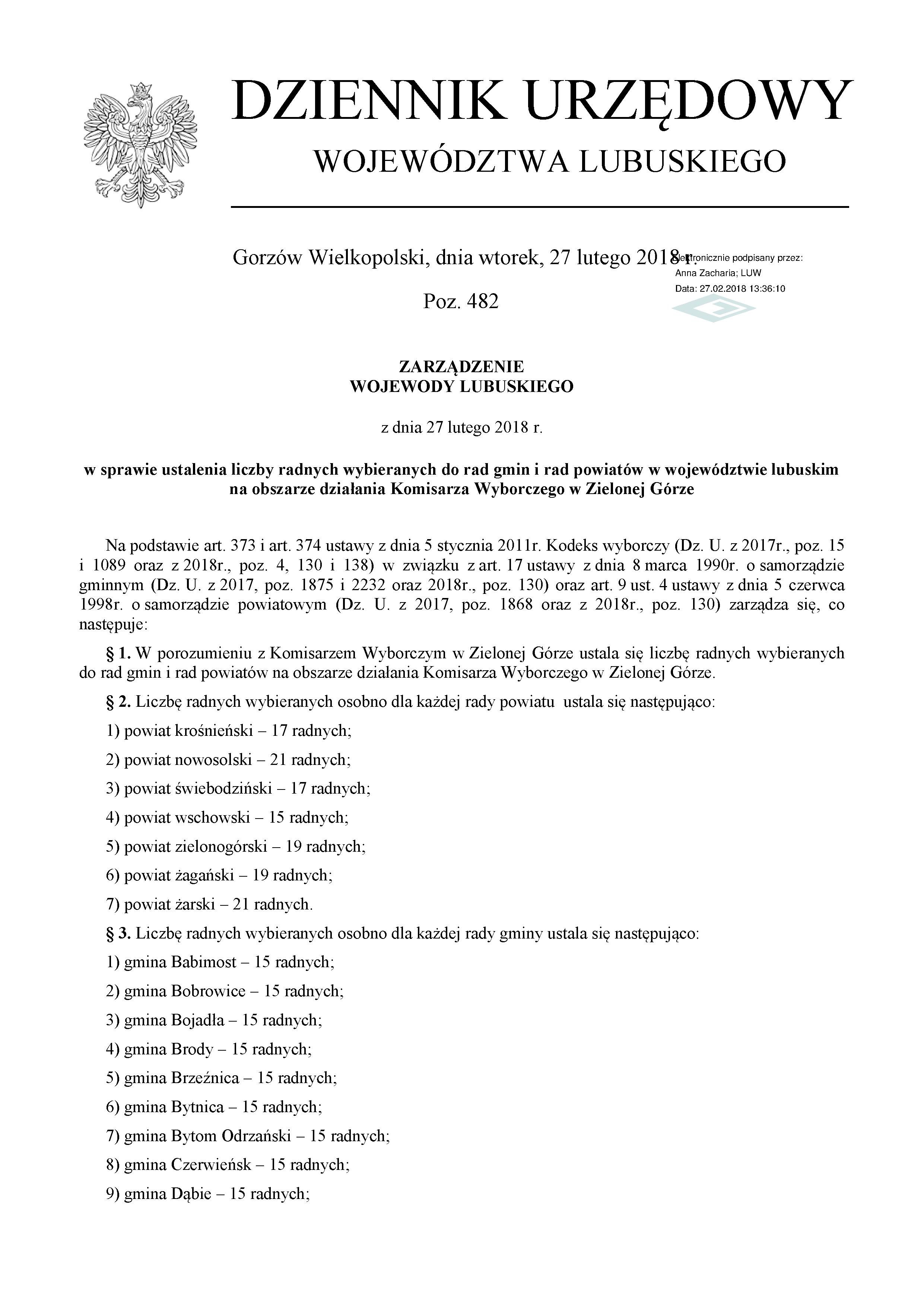 Wojewoda Lubuski 27 lutego wydał zarządzenie, dotyczące ustalenia liczby radnych w powiatach i gminach. Wynika z niego, że powiat żagański w czasie tegorocznych wyborów samorządowych straci dwóch radnych. Od najbliższej kadencji rada powiatu będzie miała tylko 19 radnych, a nie 21, jak do tej pory.