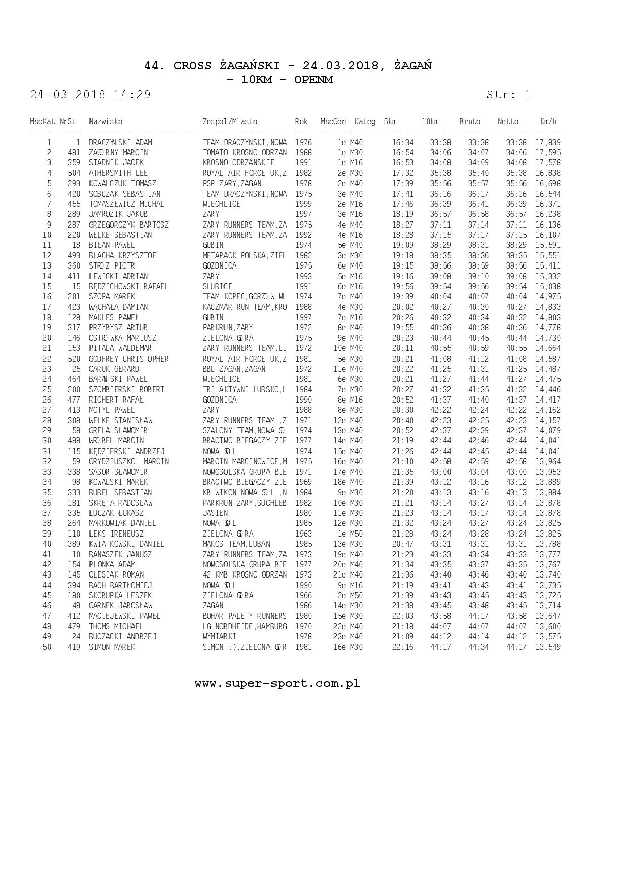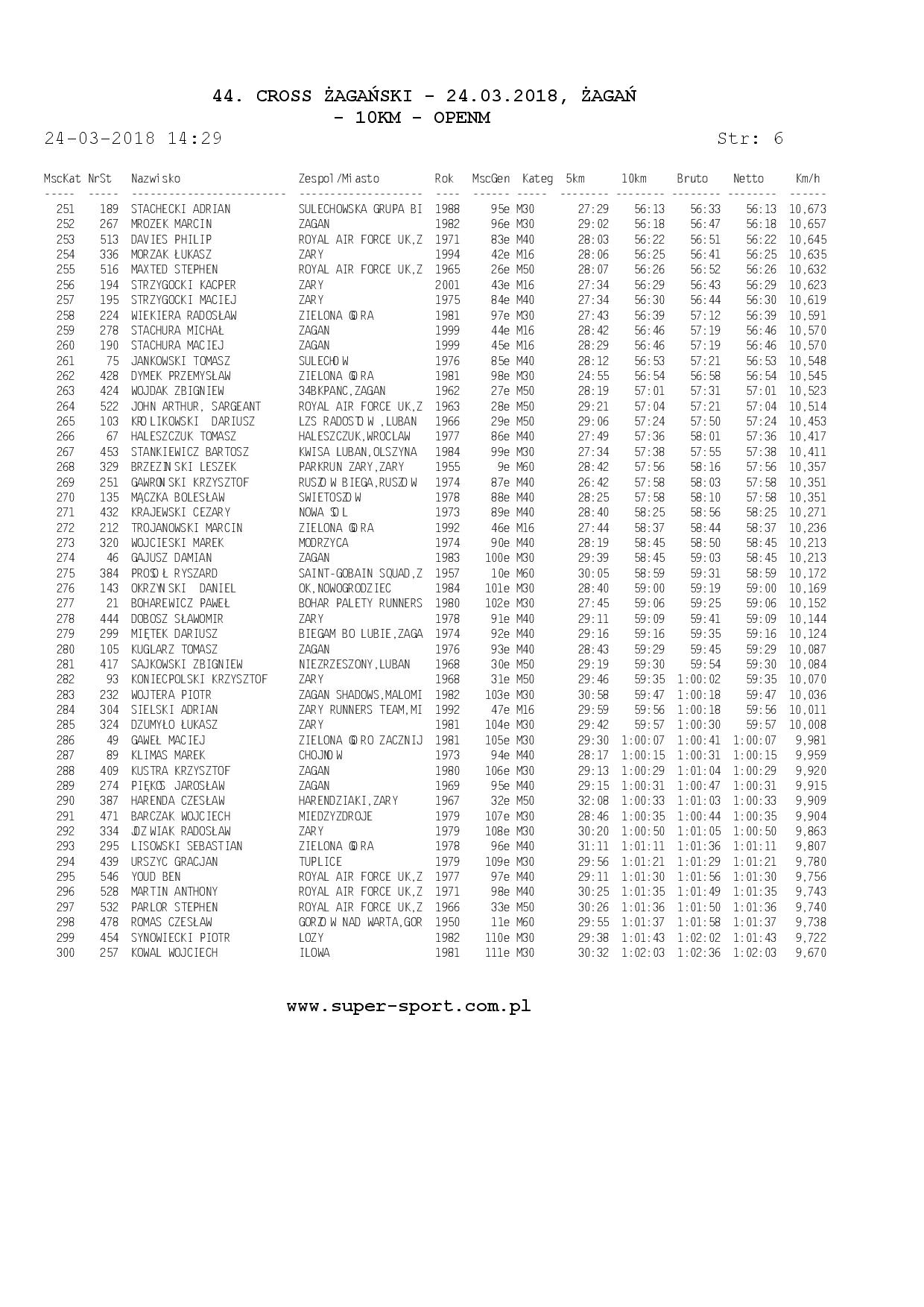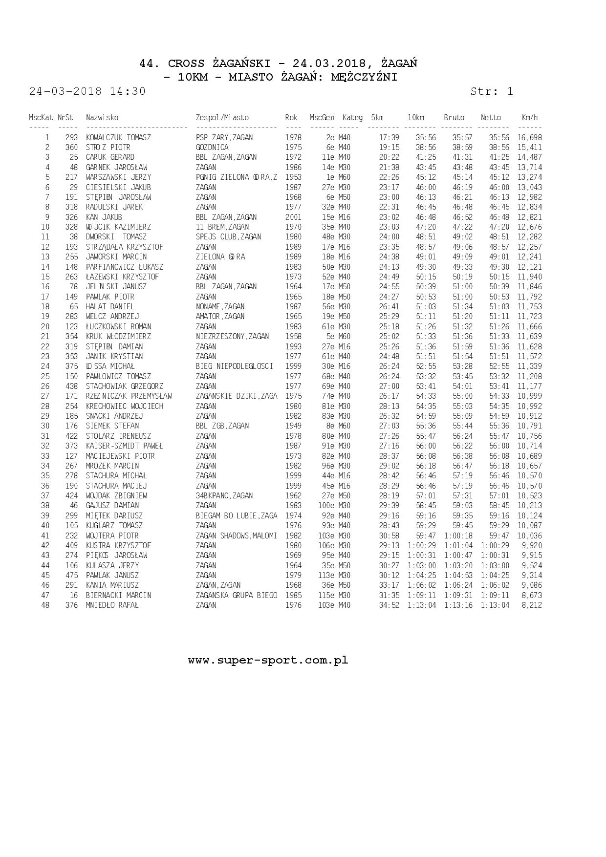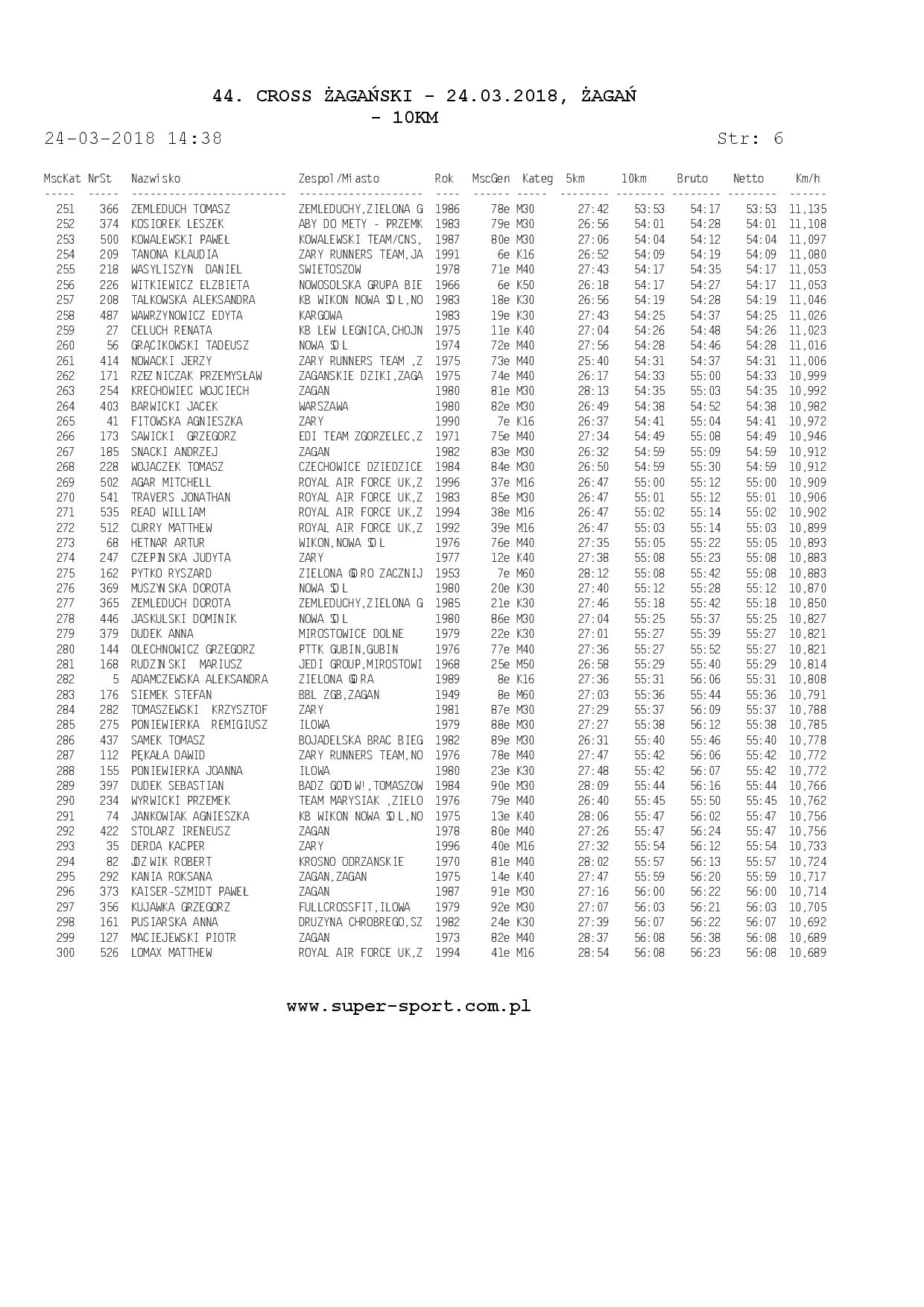 Wyniki ze strony: WWW.super-sport.com.pl