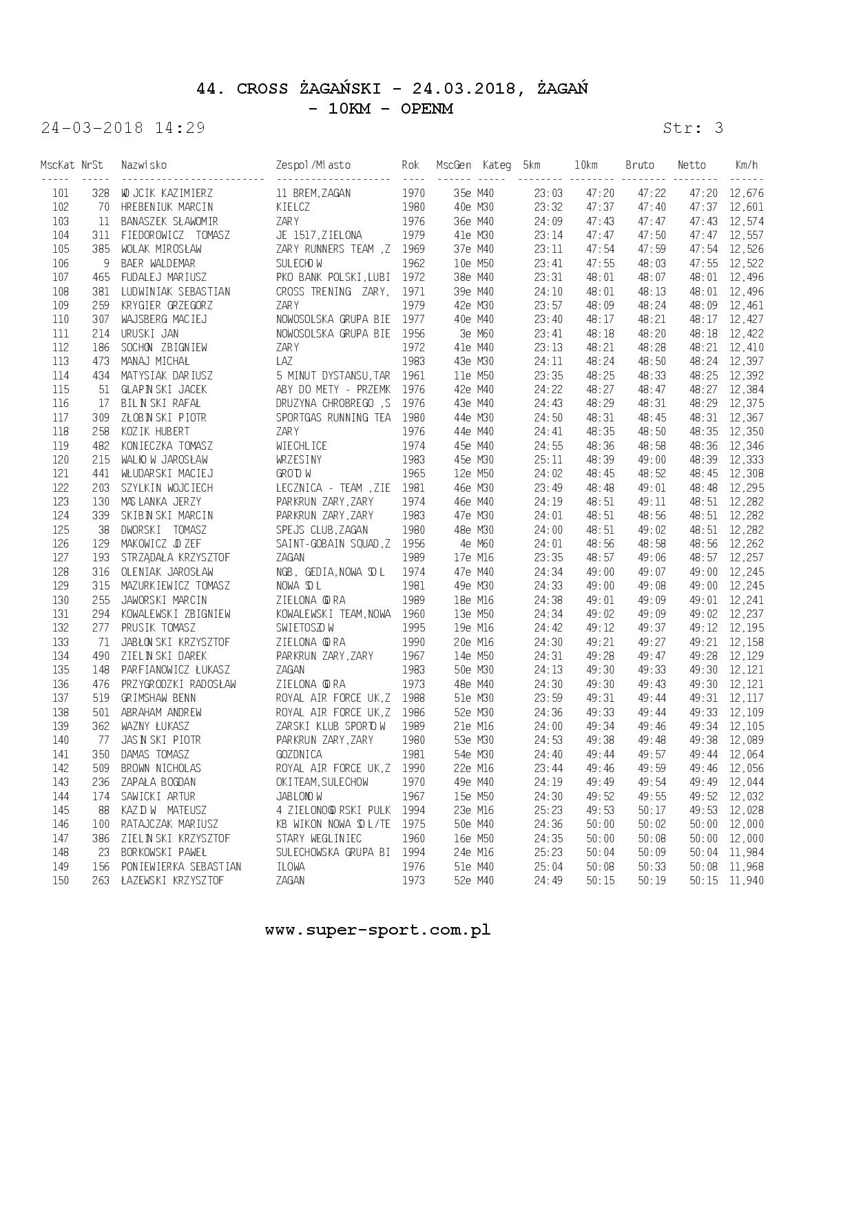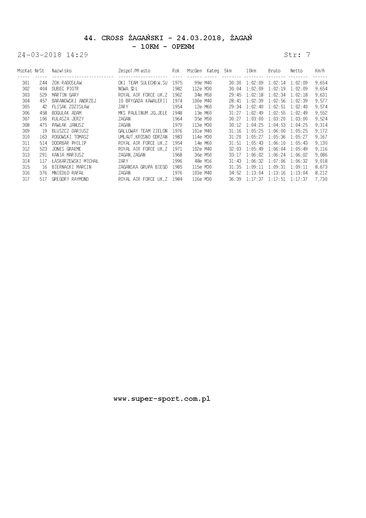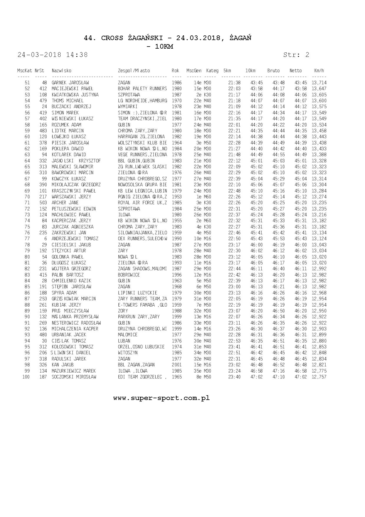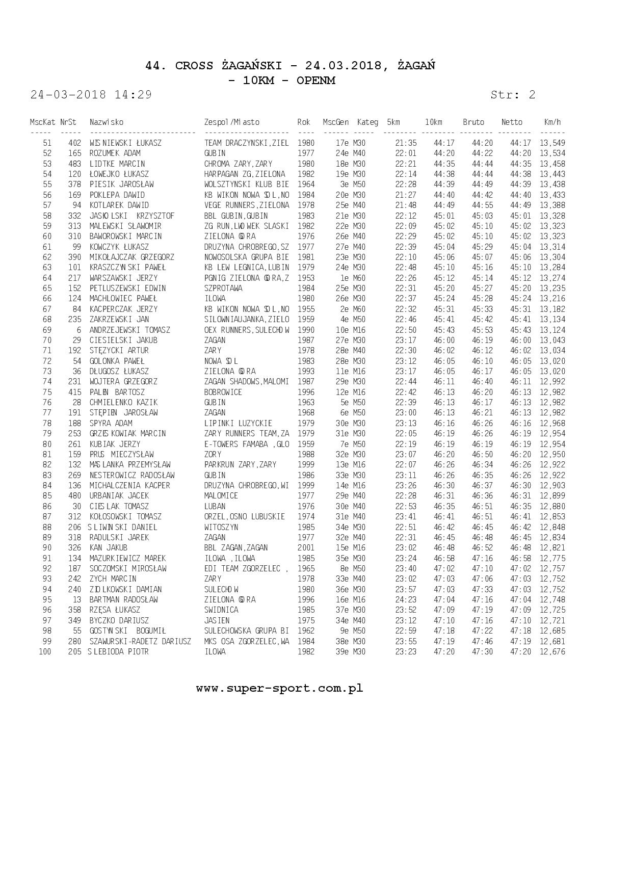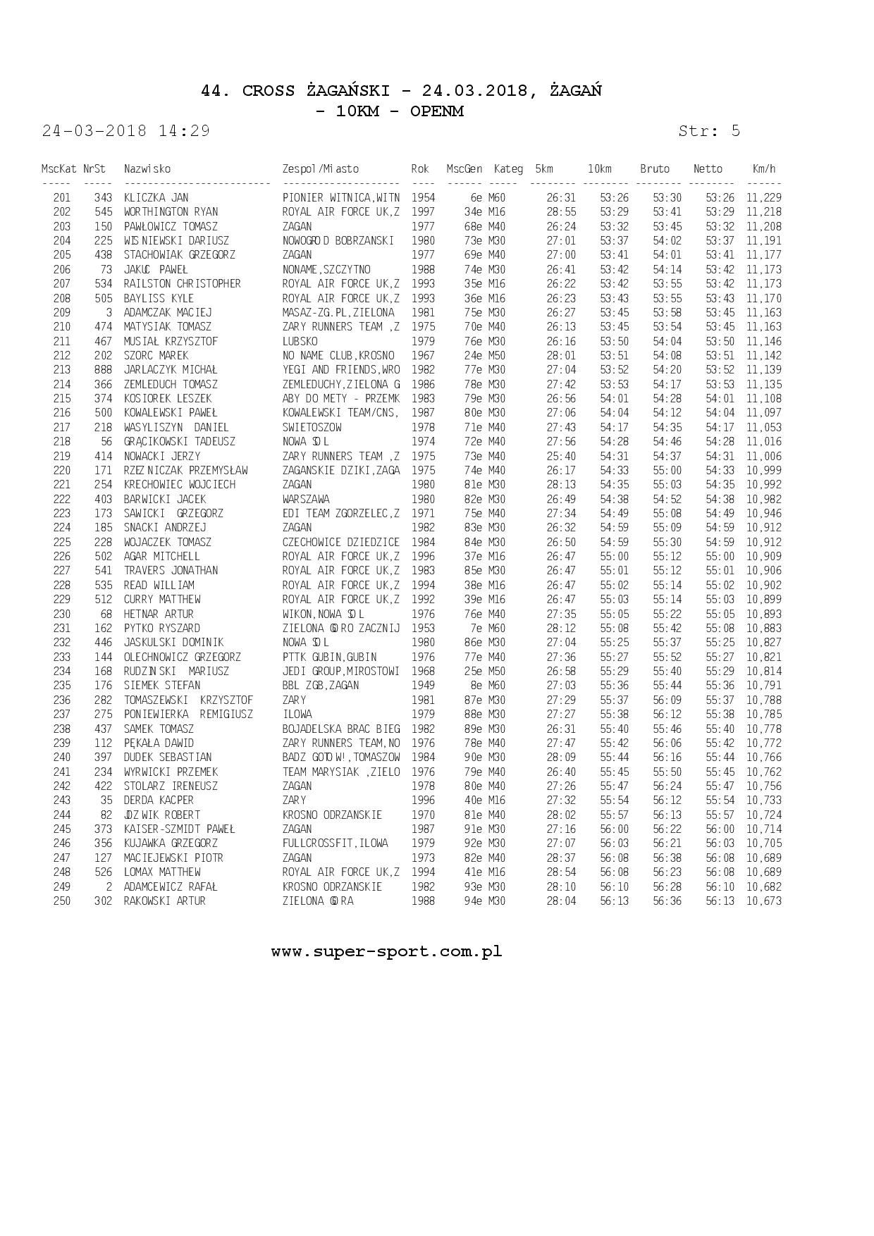 Wyniki ze strony: WWW.super-sport.com.pl
