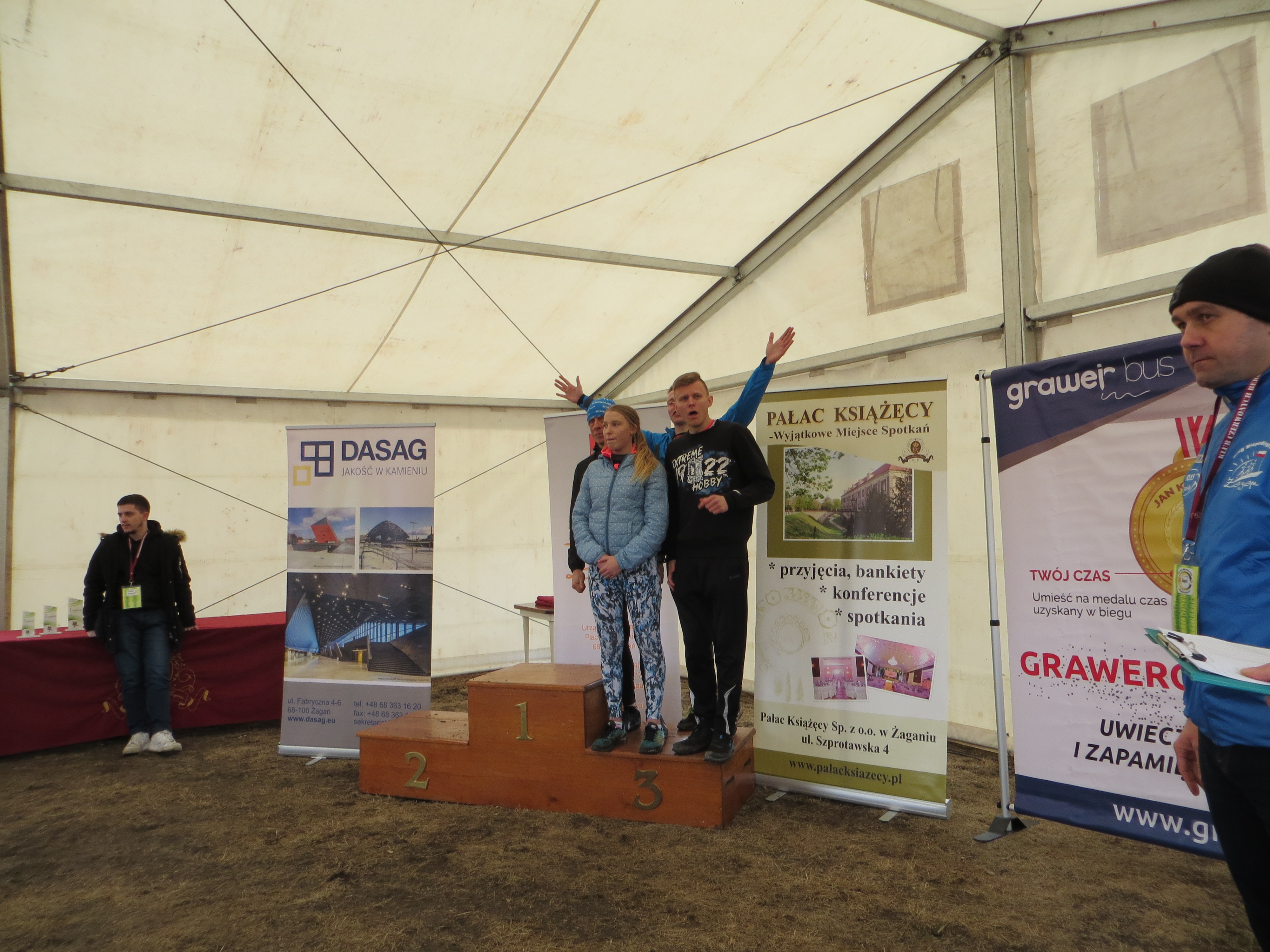 Imprezę poprowadził Karol Cząstka, znakomity trener i biegacz. – Brytyjczycy wzięli udział zarówno w sztafecie, jak i biegu głównym – powiedział nam. – Warunki pogodowe sprzyjają biegaczom, na trasie przewidzieliśmy kilka przeszkód. W sztafecie jest nią górka piachu, w biegu głównym snopki siana.