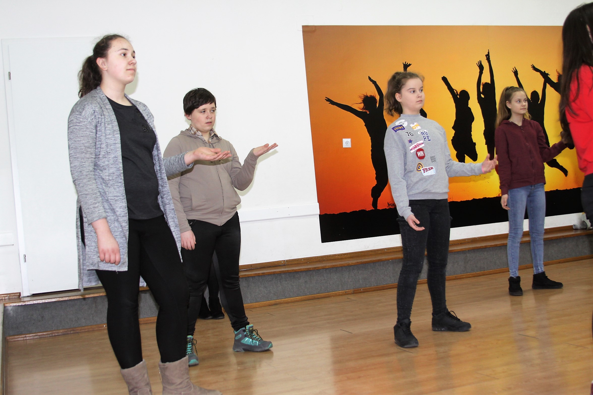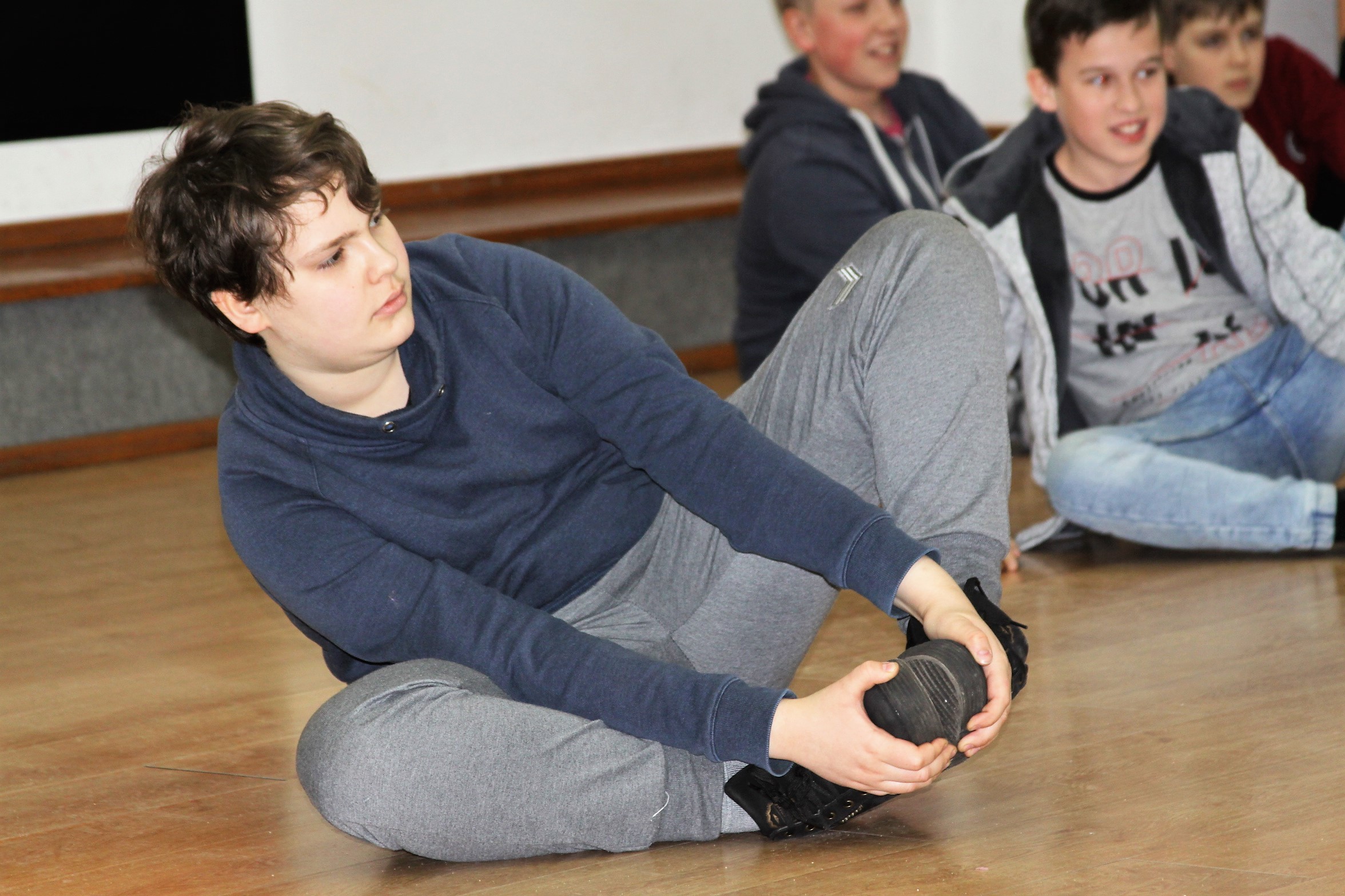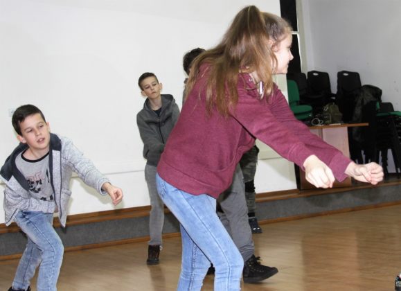 W zajęciach w sali 041 wzięli udział uczniowie wszystkich miejskich szkół. Było zabawnie, wesoło i ciekawie, podczas aktorskich ćwiczeń, polegających między innymi na rozgrzewce, pobudzaniu kreatywności i odgrywaniu krótkich scenek.
