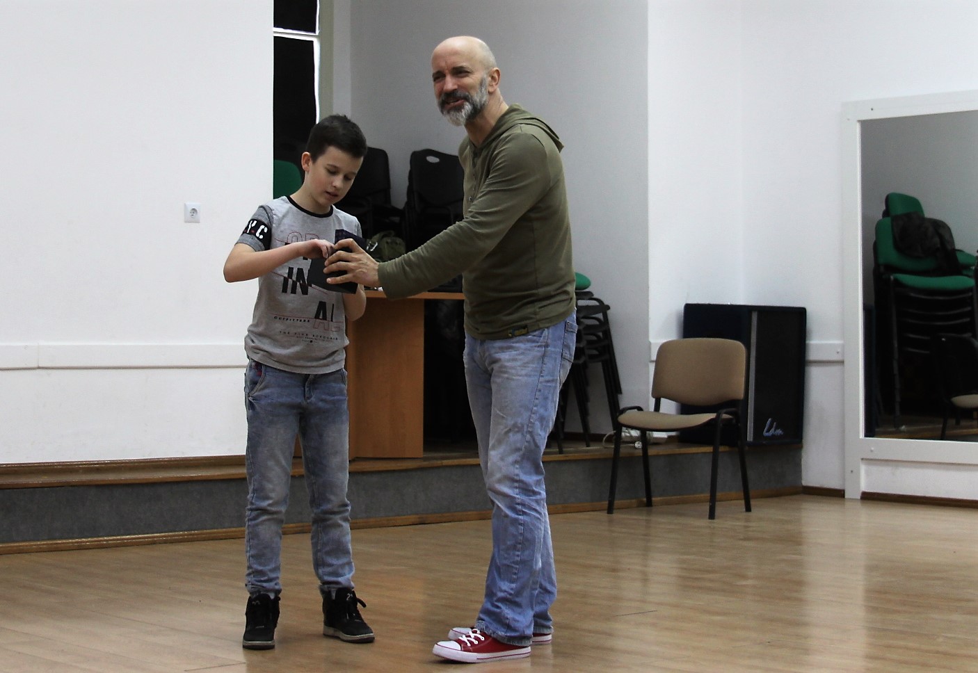 – Nie mamy zbyt dużo czasu podczas warsztatów – powiedział A. Beling. – Ale chcę pokazać dzieciakom, że aktorstwo to również plastyczny ruch i wyobraźnia.