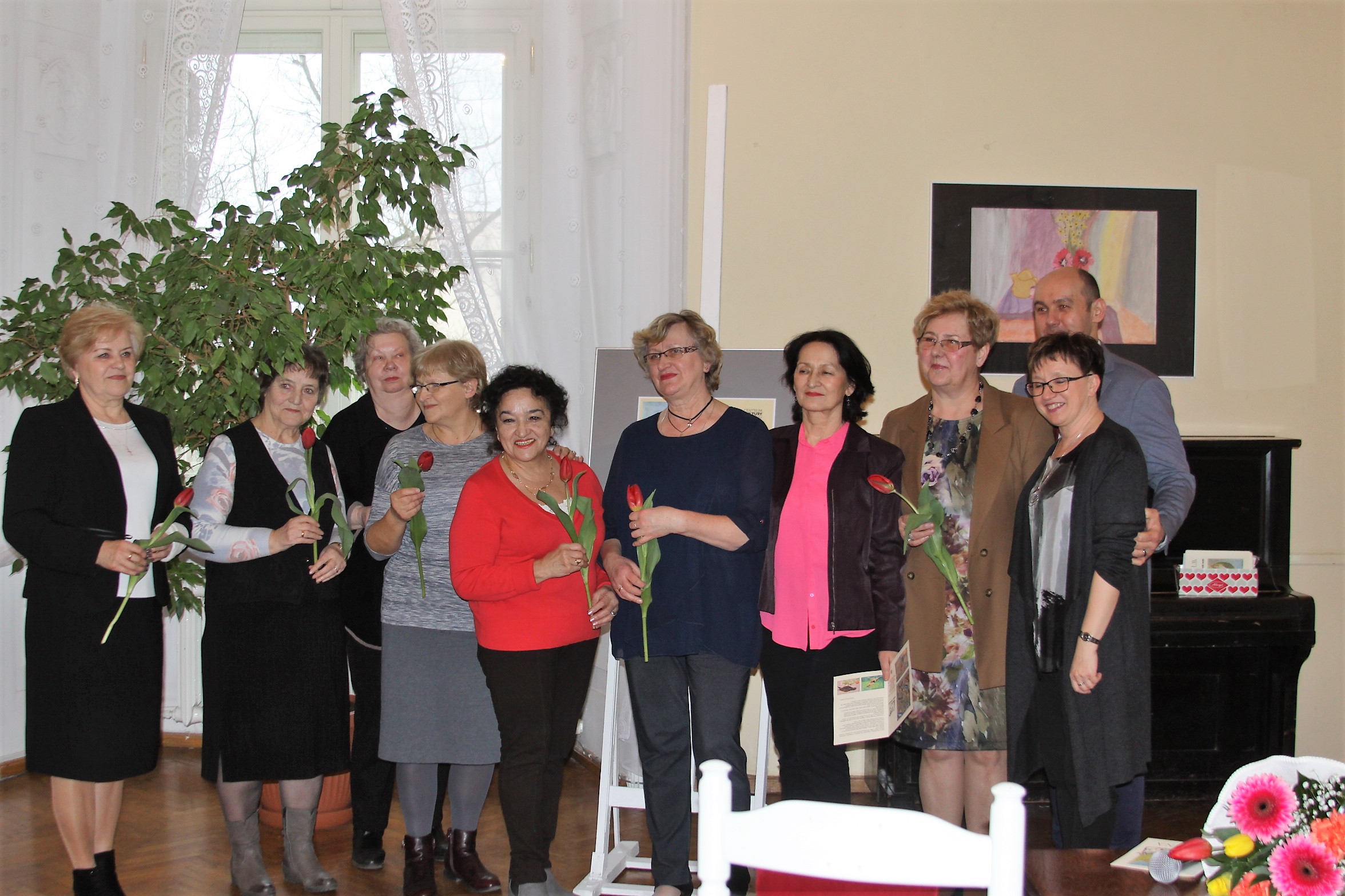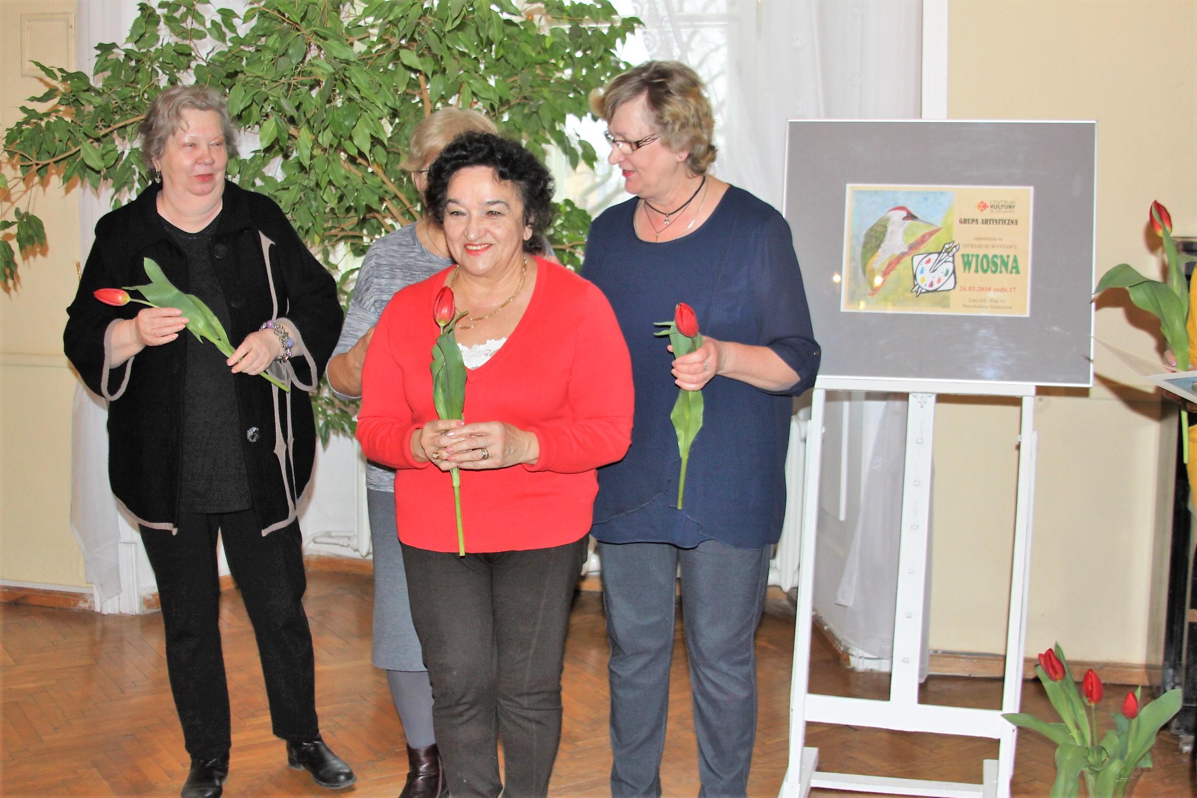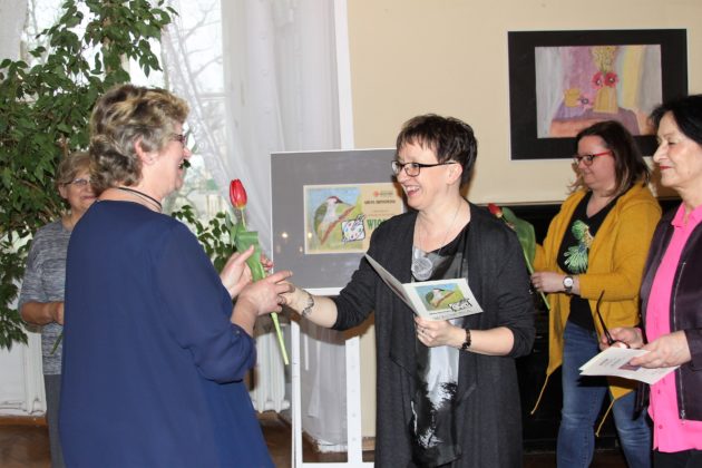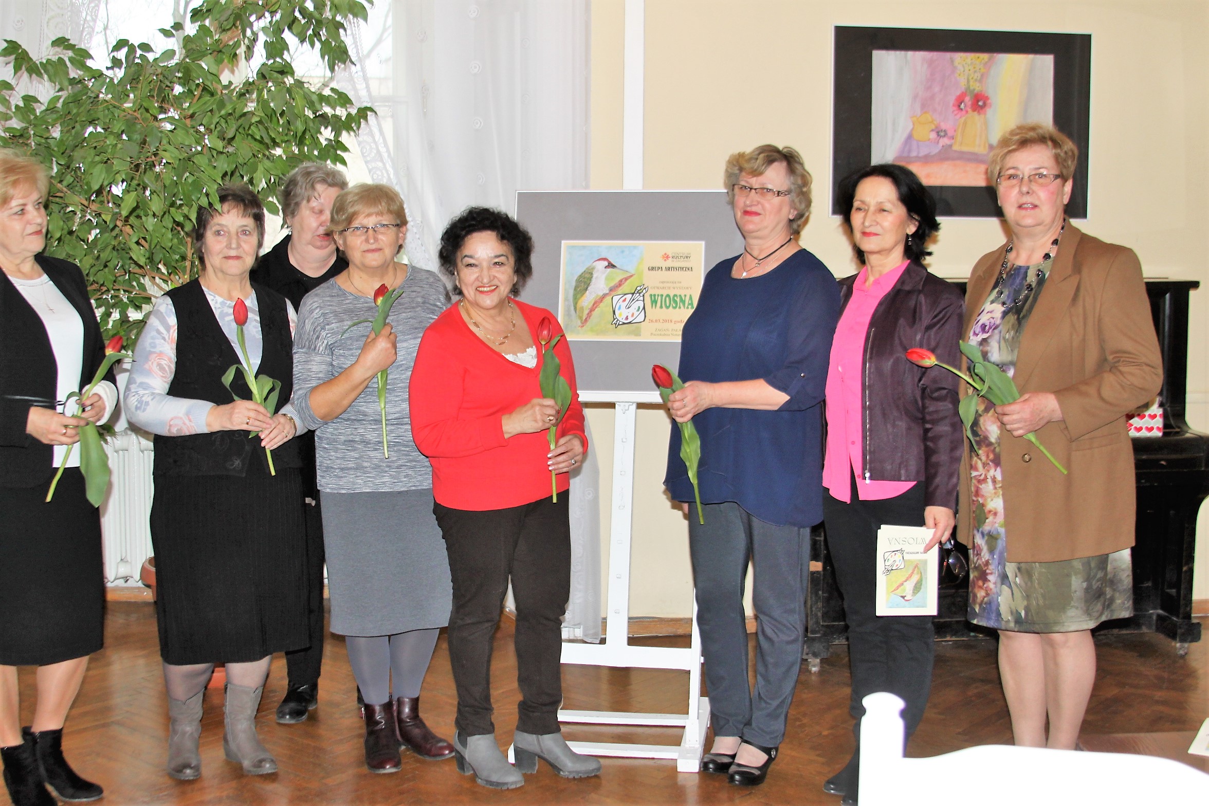 Na wystawie można oglądać obrazy Stefanii Bryłki, Alicji Dorozińskiej, Róży Hnatuśko, Danuty Klar, Maryli Kuli, Stanisławy Niemców, Elidy Saul, Władysławy Stasiewicz i Anny Wasyliszyn. Poniedziałkowemu wernisażowi towarzyszył śpiew ptaków, stwarzający wiosenny nastrój. Wydarzenie otworzyła Beata Tołpa, dyrektor Centrum Kultury, zaś przy jednym z kawiarnianych stolików ustawionych w holu notarialnym zasiadł Paweł Lóssa, prezes spółki Pałac Książęcy. Byli też przyjaciele i znajomi artystów.