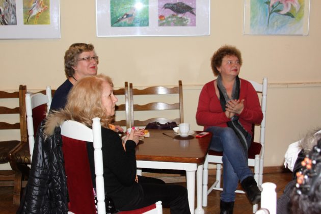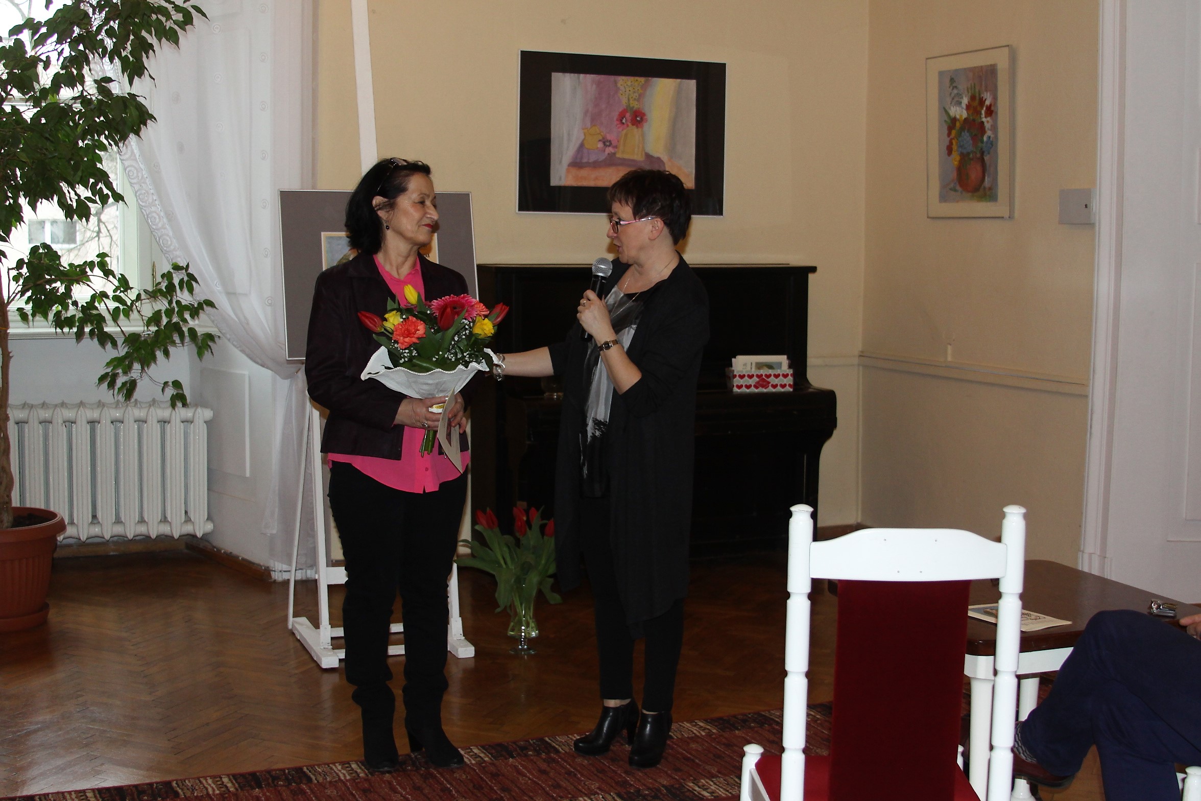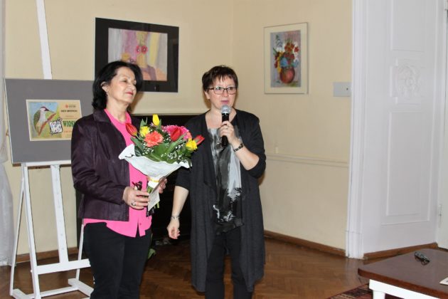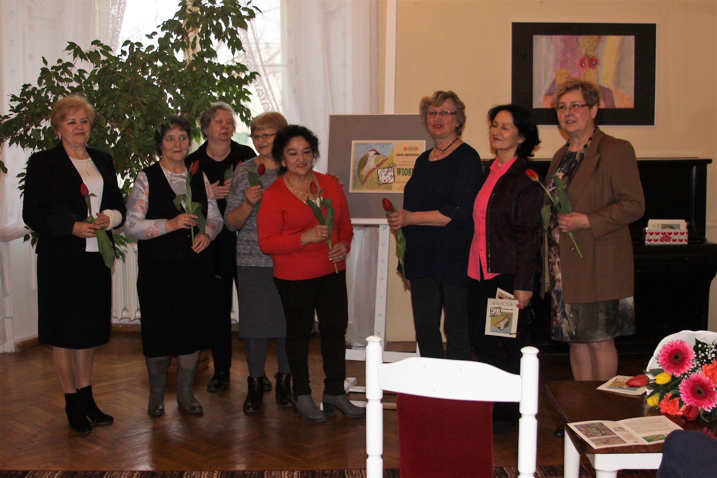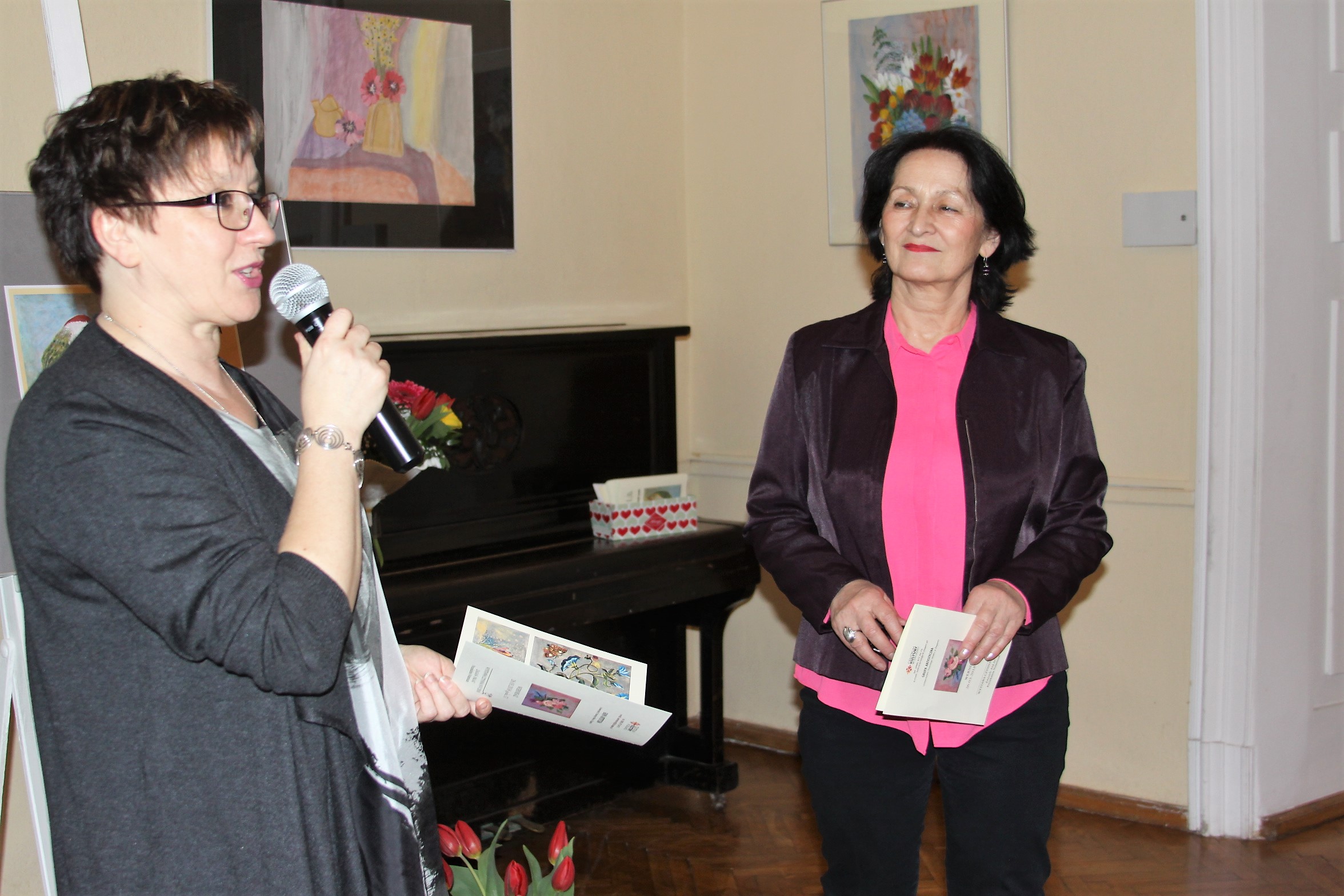 Na wystawie można oglądać obrazy Stefanii Bryłki, Alicji Dorozińskiej, Róży Hnatuśko, Danuty Klar, Maryli Kuli, Stanisławy Niemców, Elidy Saul, Władysławy Stasiewicz i Anny Wasyliszyn. Poniedziałkowemu wernisażowi towarzyszył śpiew ptaków, stwarzający wiosenny nastrój. Wydarzenie otworzyła Beata Tołpa, dyrektor Centrum Kultury, zaś przy jednym z kawiarnianych stolików ustawionych w holu notarialnym zasiadł Paweł Lóssa, prezes spółki Pałac Książęcy. Byli też przyjaciele i znajomi artystów.