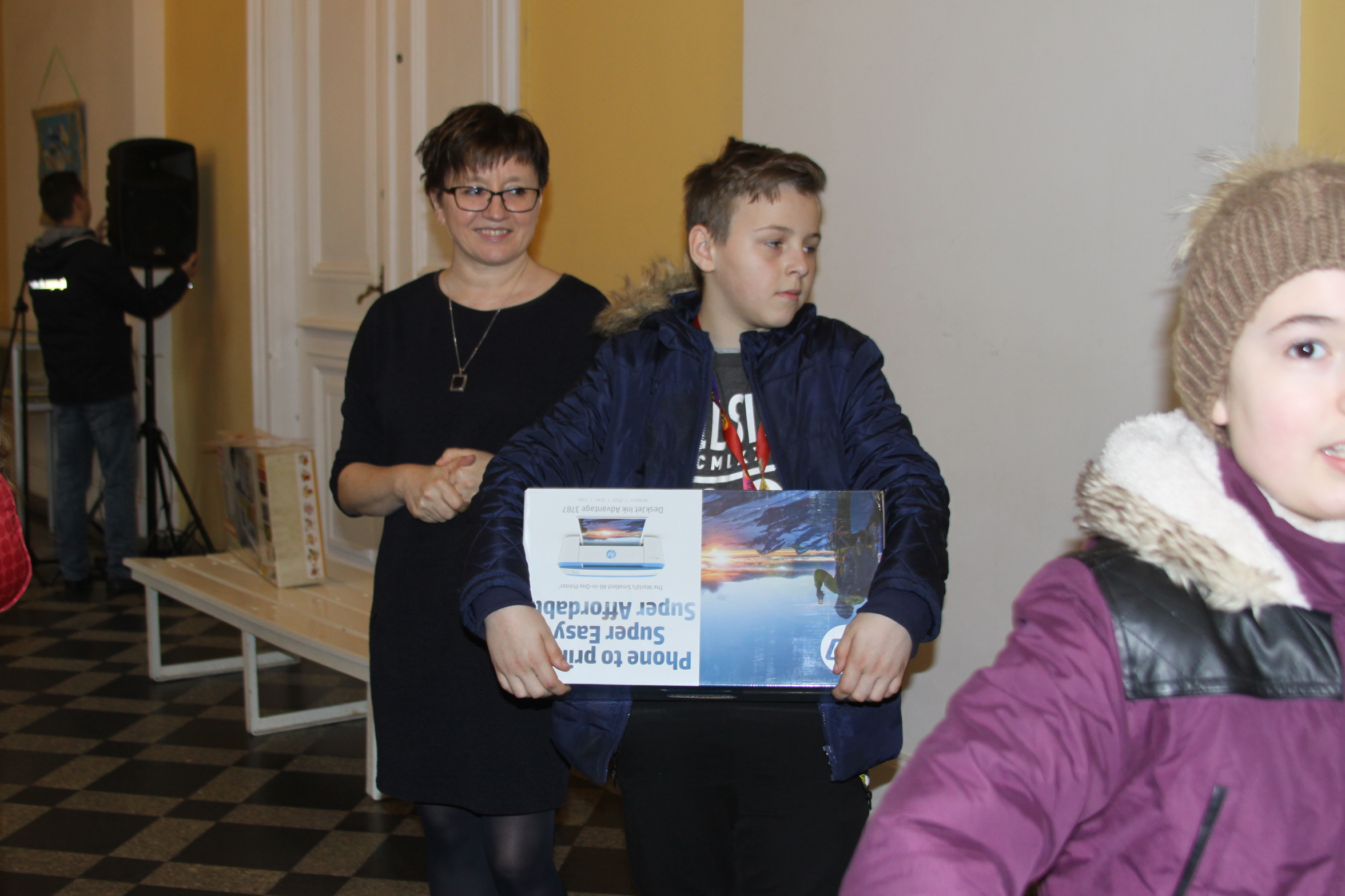 W kategorii kartka świąteczna pierwsze miejsce przyznano Natalii Błaszczak, uczennicy klasy I „B” w siódemce. Drugie otrzymało Miejskie Przedszkole nr 6, trzecie grupa „Sówki” z oddziału przedszkolnego przy PSP 5. Wyróżnienia indywidualne dostali: Pola Budziłło z MP 5, Natalia Adamczak i Tymoteusz Zwoliński, gr. 5-6 latków z MP 3. Nagrodę dodatkową za wykonanie makatki dla „Skrzatów” przyznano grupie 6-latków z MP 6.