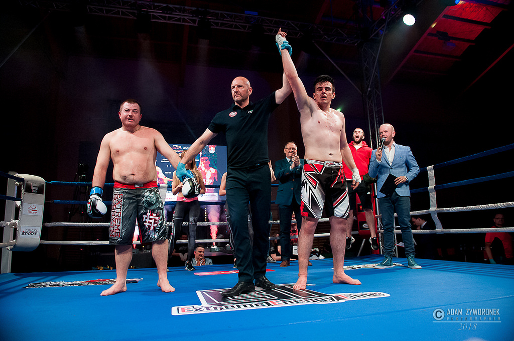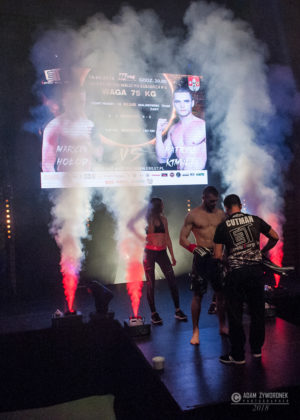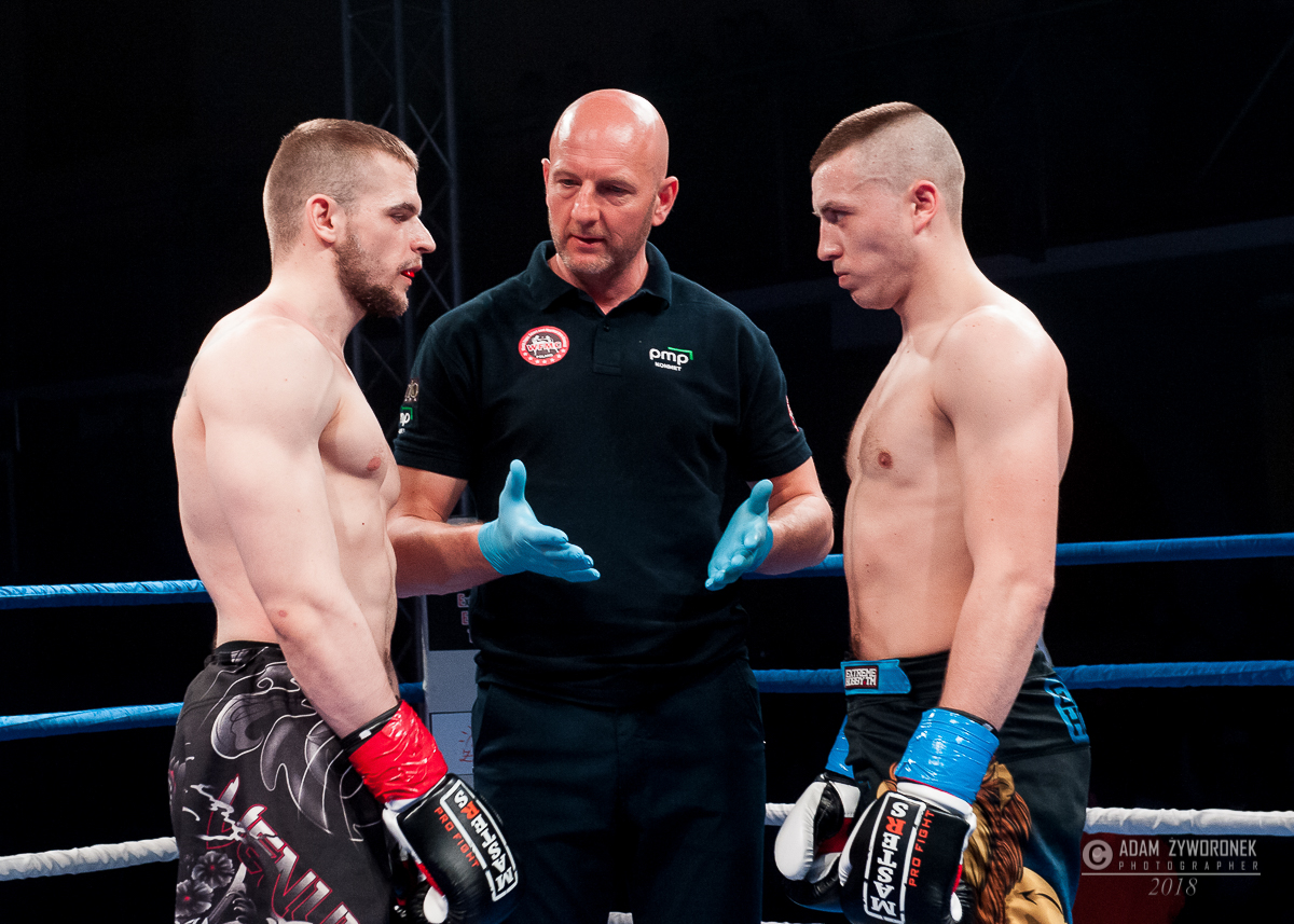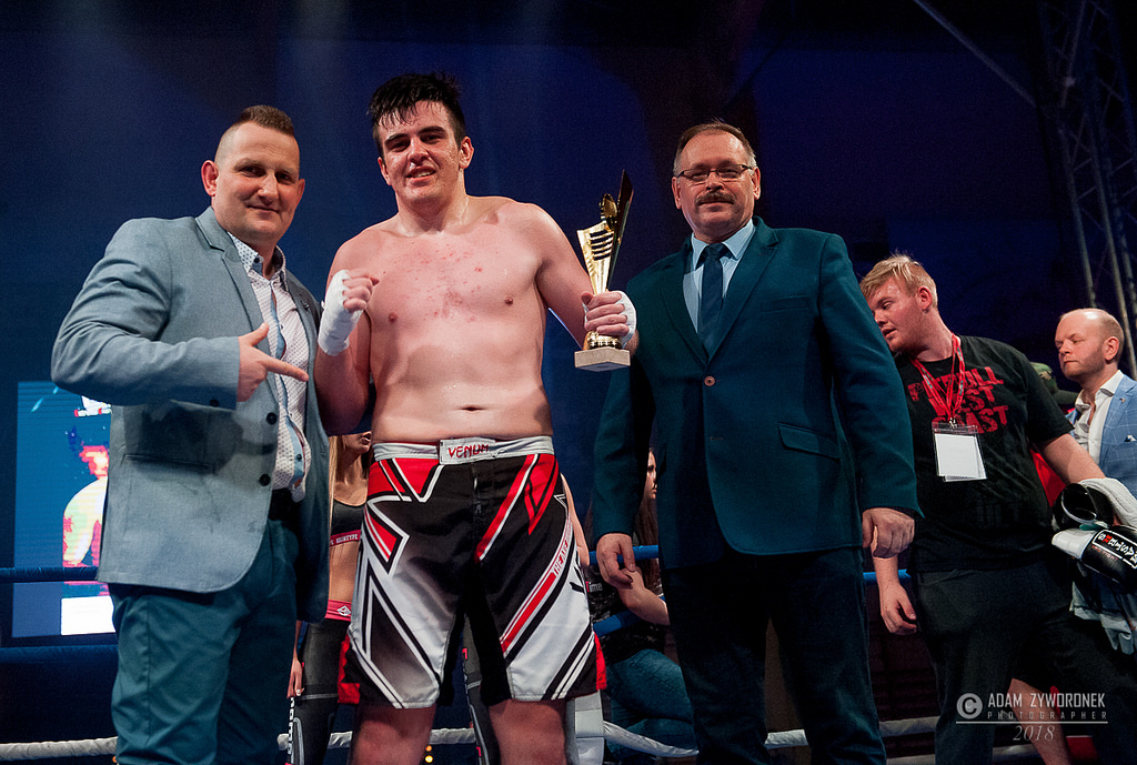 Jedną z gwiazd gali był Patryk Kimula z Malinowski Team. – Jestem dobrze przygotowany i spokojny – powiedział nam w szatni przed walką. – Zacząłem trenować sporty walki dosyć późno, bo dopiero w wieku 19 lat, ale od razu z sukcesami. Już po czterech miesiącach wziąłem udział w imprezie walkowej i wygrałem. Dzisiaj mogę powiedzieć, że trenuję od pięciu lat. Sport zmienił całe moje życie, które jest podporządkowane samodyscyplinie.